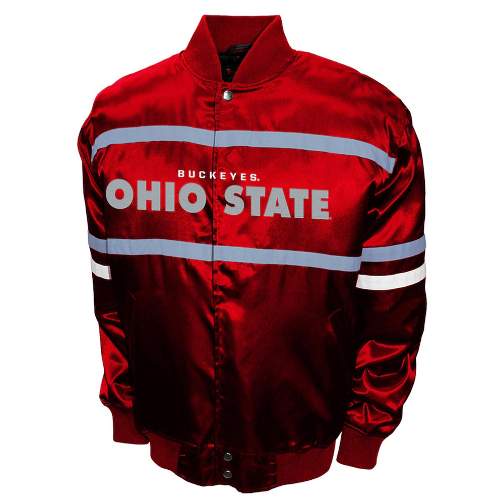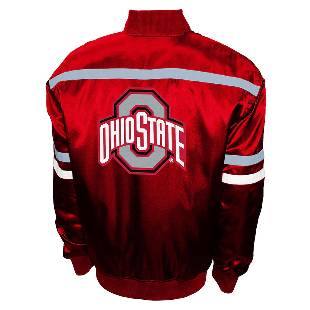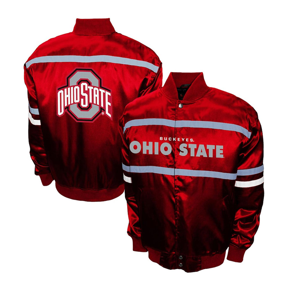 The Ohio State Buckeyes 2nd Era Scarlet Jacket is for men and women, created with the spirit of the Ohio State Buckeyes to show your team support in style. Made from satin, this jacket carrying the figure and colors of the team is as daring as the side it belongs to. Inside, there is a soft viscose lining and makes it fitting for cooler days or any game night as well. The snap tab buttoning at the front is easy to operate and ensures that it cannot be easily un-tucked. The sleeves are long and form fitted with rib-knitted cuffs creating the insulation effect, the hemline is also in ribbed stretch giving the Ohio State Buckeyes 2nd Era Scarlet satin Jacket the conventional cyclonical form. What makes this jacket unique is the large, ‘Ohio State’ lettering that is displayed on the front and back, making your team’s preference easily identifiable.