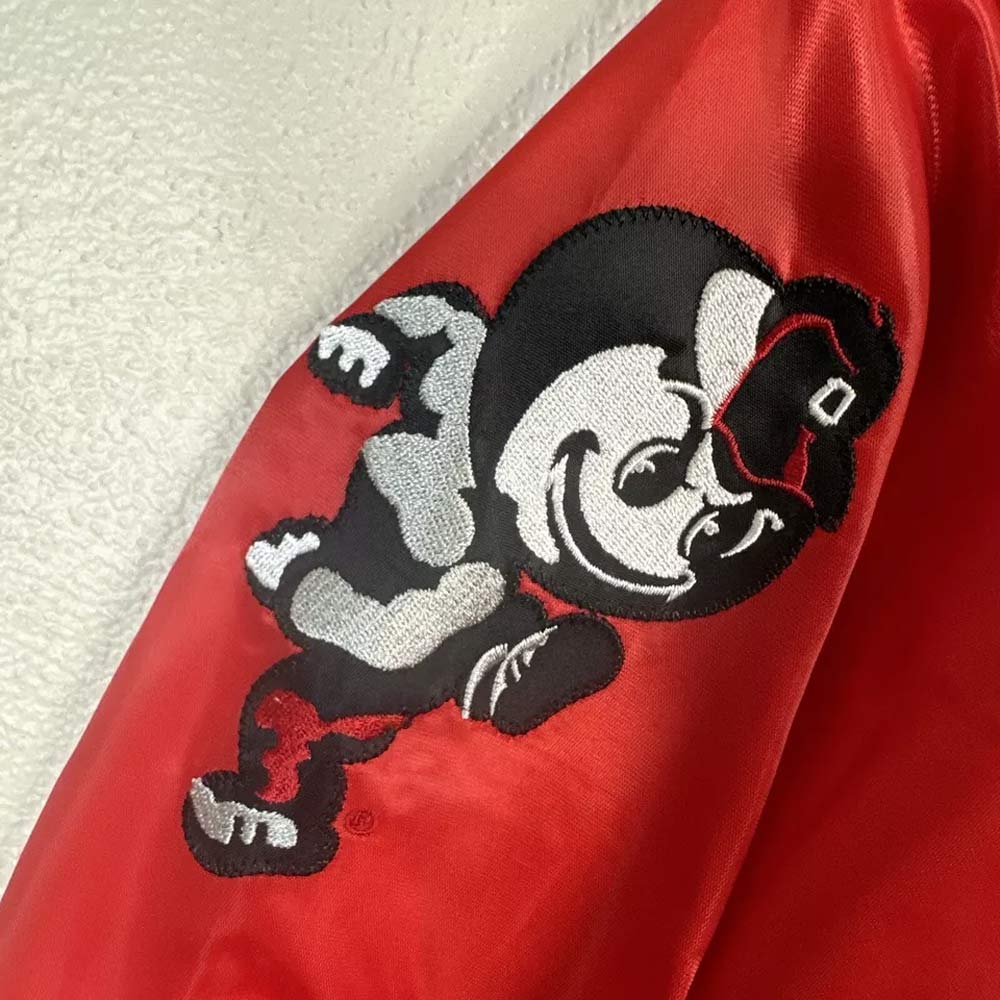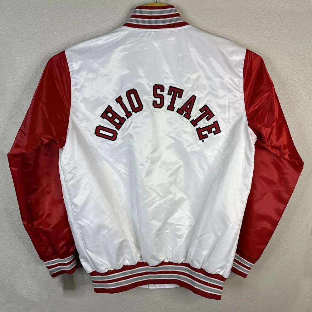 Take your home game day attire to the next level and grab Ohio State Buckeyes White and Red Jacket that will provide comfort as well as flair. For men and women, this jacket will do a great justice to celebrate the legend that is Ohio State Buckeyes Football team. Made from satin material with a white and red mix of colors that makes you standout of the crowd, the jacket is made of high quality material. The inner viscose lining makes it even warmer so it can be worn all year round. The Ohio State Buckeyes White and Red varsity satin Jacket features an intentionally fitted rib-knitted collar, cuffs and hem line and the snap tab closure make it easily portable and adjustable. The long fitted sleeves harmonize well with the jacket.