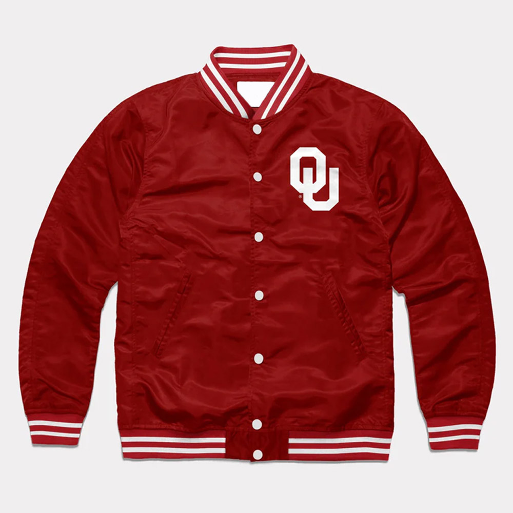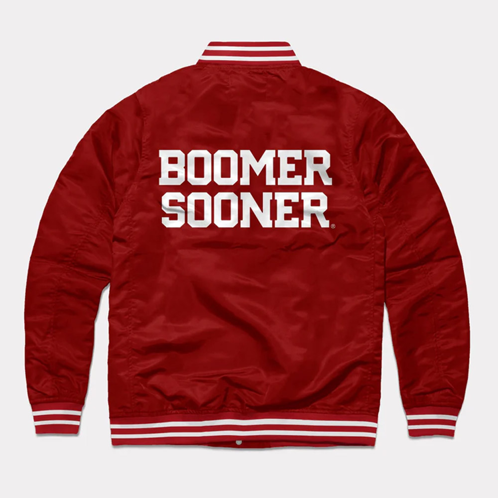 Celebrate the Oklahoma Sooners with the Oklahoma Sooners Jacket, a breathtaking gear that emulates the famed Boomer Sooners. This jacket is for both male and female adults and cut on classical model with modern functionality. It is made from high-quality satin and with a cardinal color that embodies the spirit of the Sooners. The inner viscose lining guarantees that the product is comfortable to wear, warm and cozy. The advanced detail of the Oklahoma Boomer Sooners Varsity satin Jacket comprises collar, cuffs and the hemline being rib-knitted to give it the general appearance of a bomber jacket. The front features a snap tab closure that enables easy opening and ensures it is properly closed. Long sleeves provide additional protection and fashion and enable it to be worn in different occasions.
