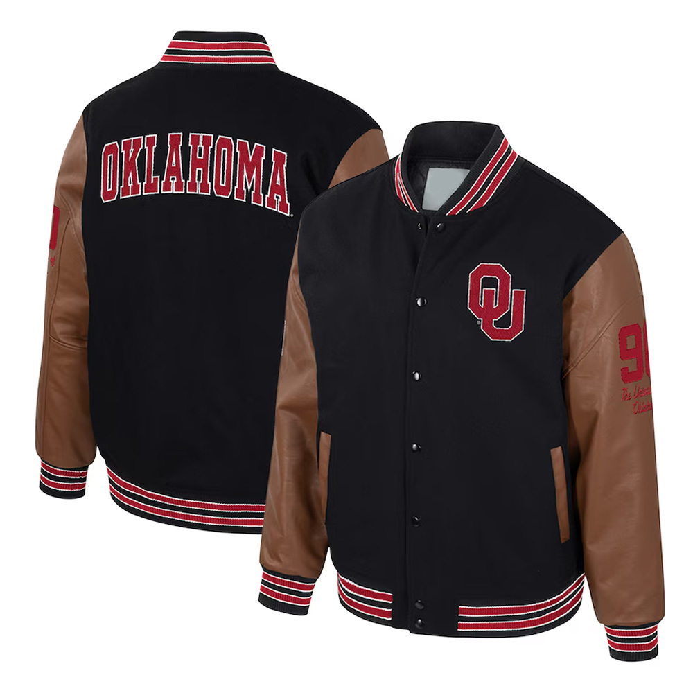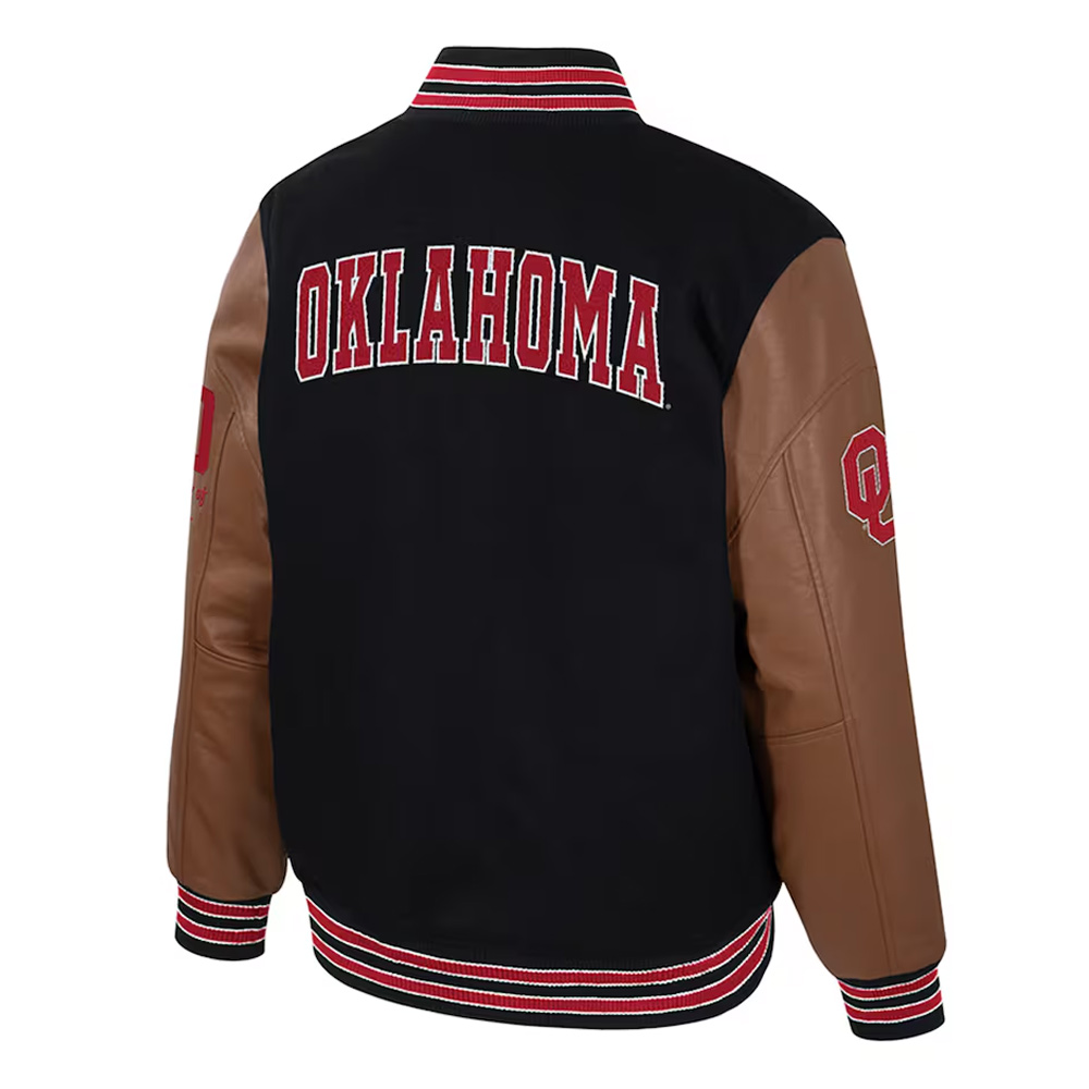 Black/Brown Oklahoma Sooners Full-Snap Wool/Leather Varsity Jacket