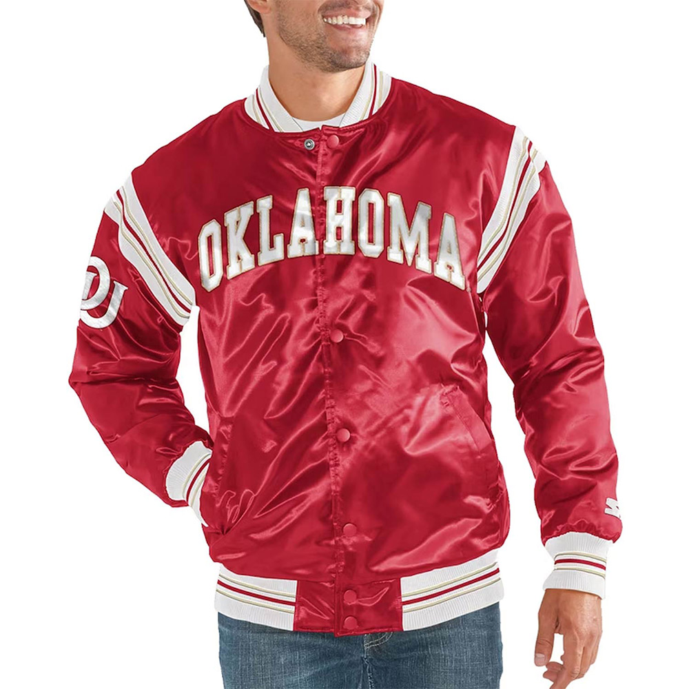 Starter Crimson The Enforcer Oklahoma Sooners Satin Full Snap Jacket