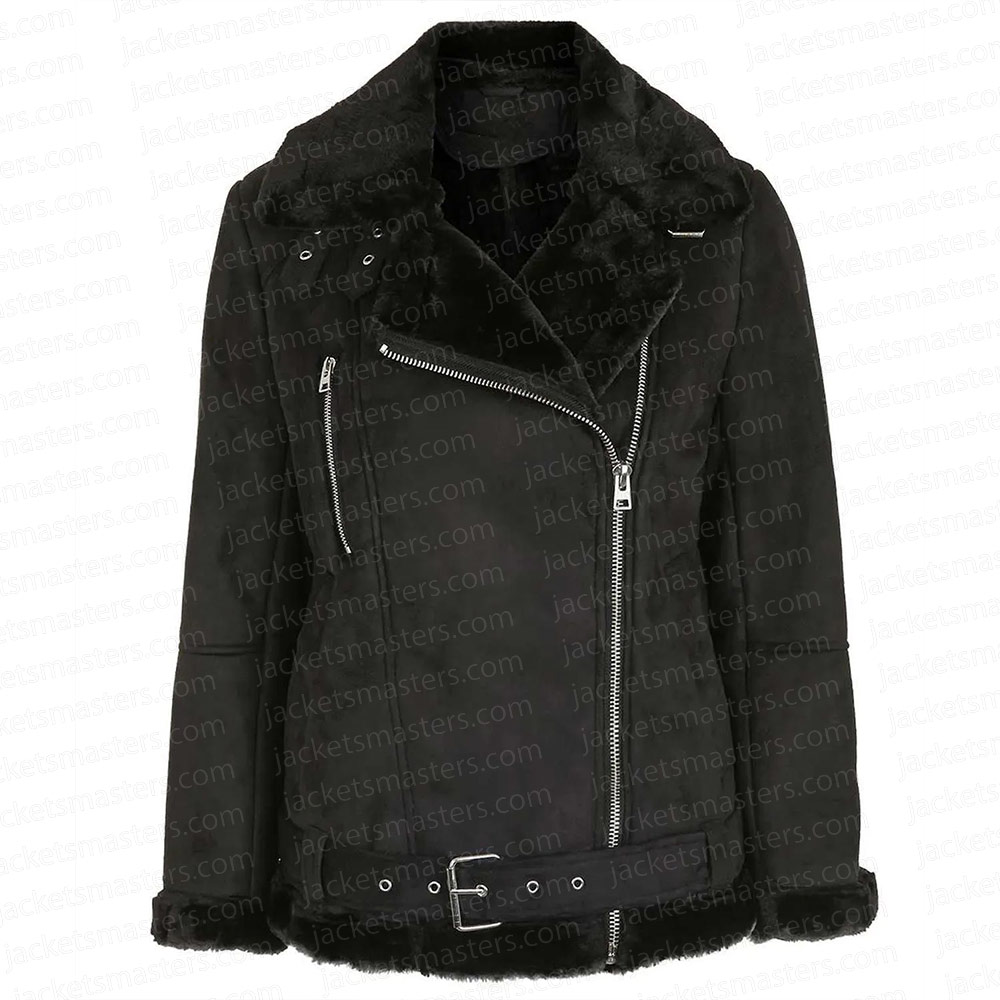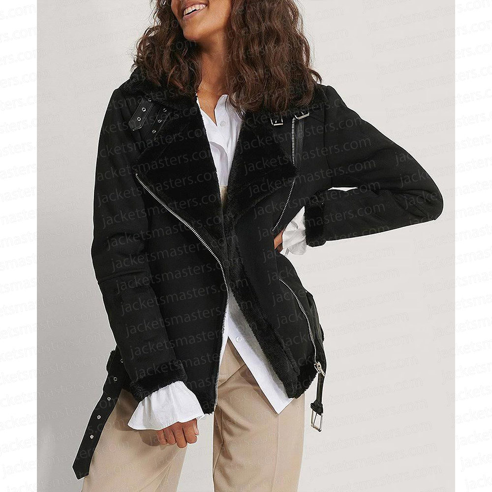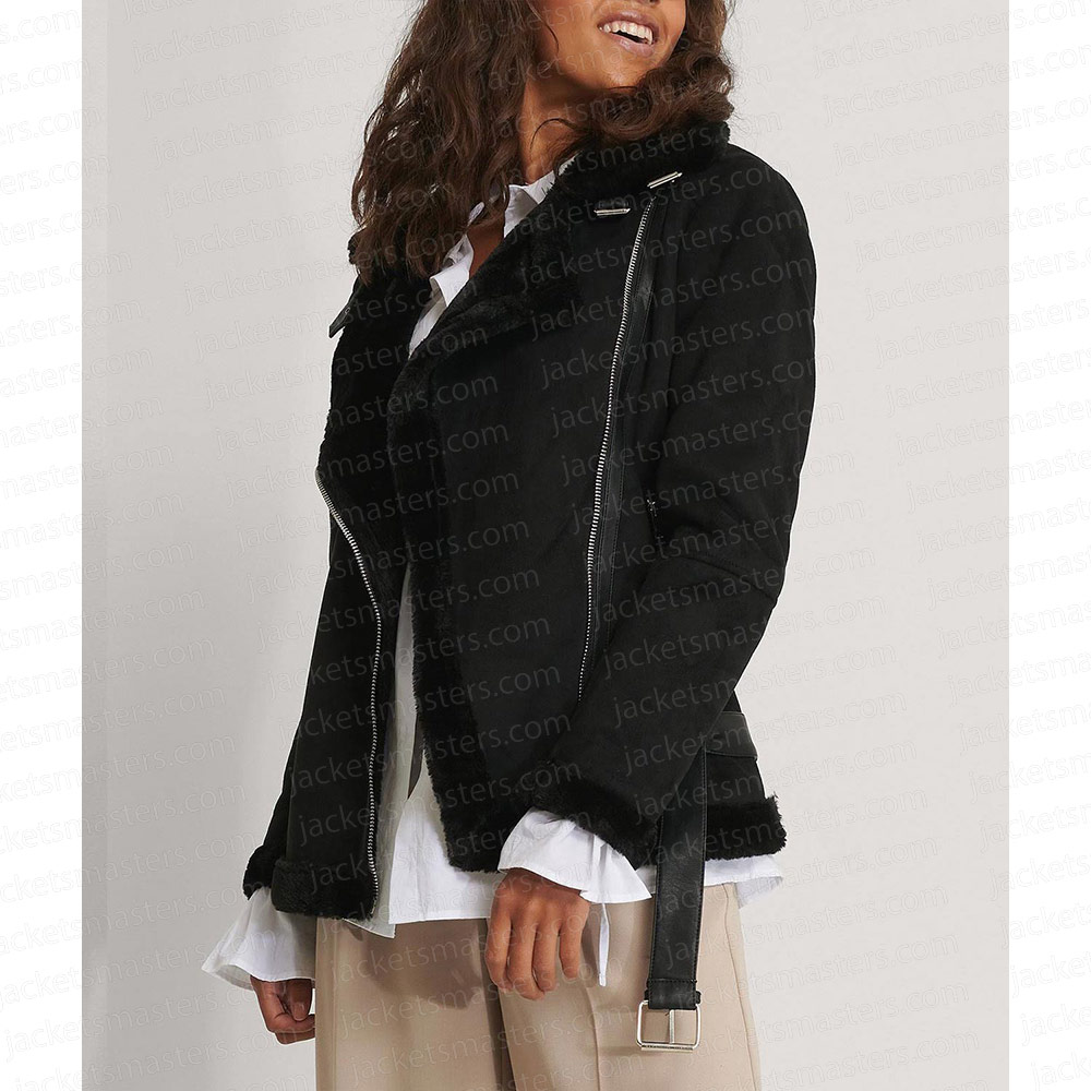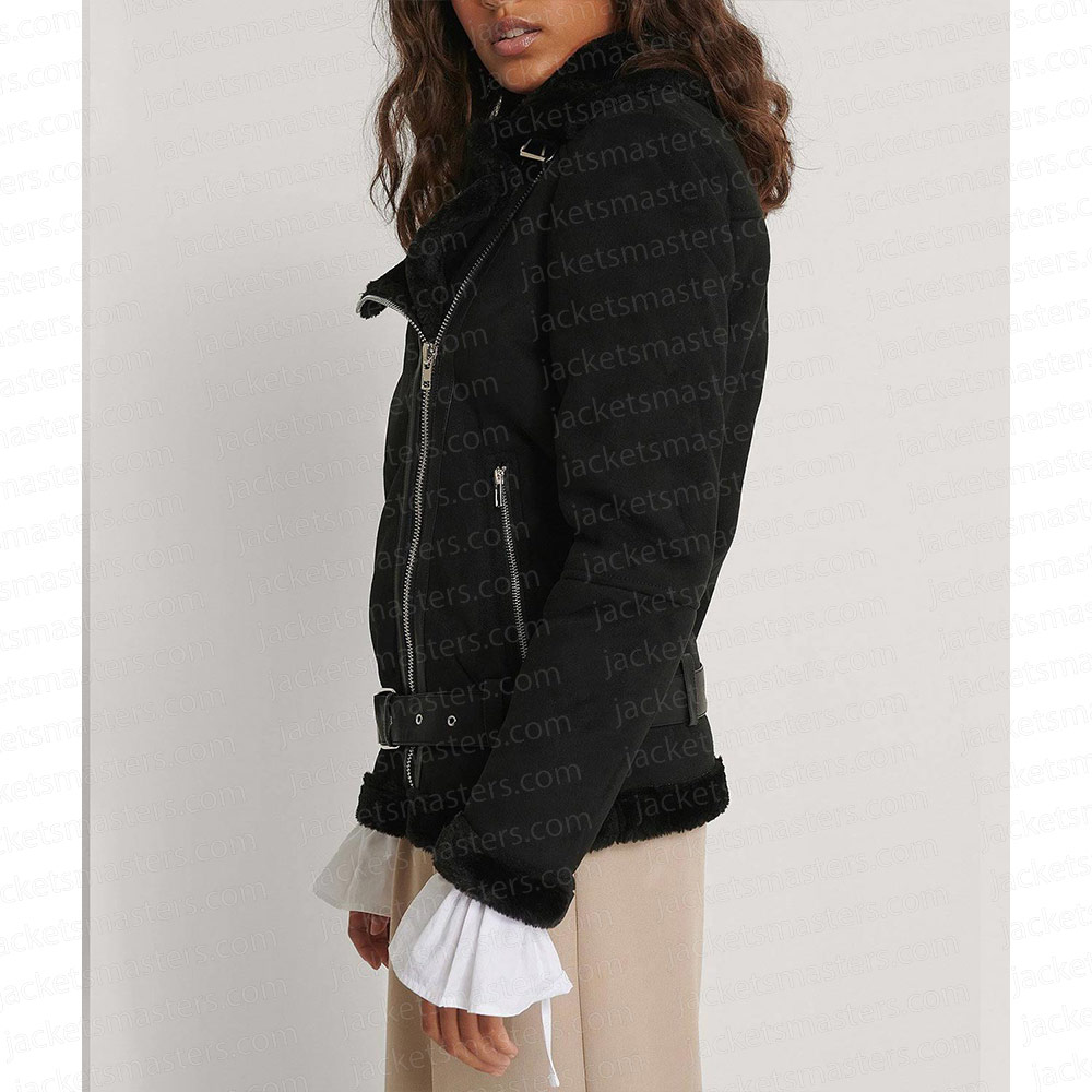 90 Day Diaries Olga Koshimbetova Aviator Black Suede Jacket