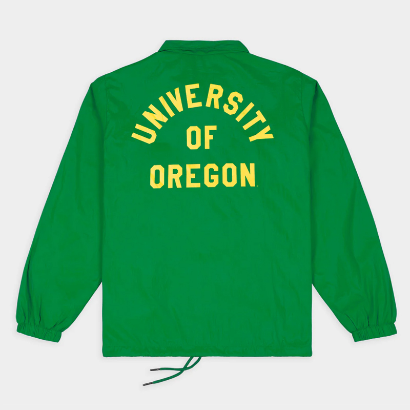 The Oregon Ducks Vintage Logo Coaches Jacket provides two practical slanted waist pockets for daily use along with pocket spaces inside to hold valuables securely. Your commitment to Oregon Ducks athletics shines through the chest logo while the back displays the written text of “University of Oregon”.