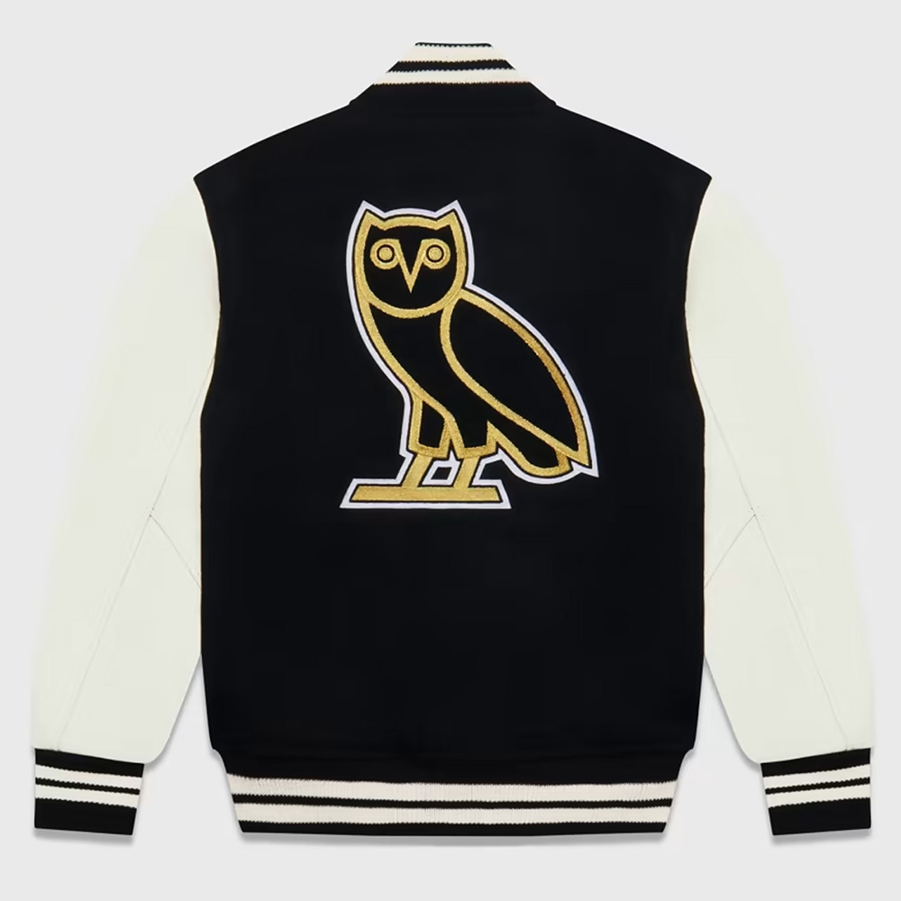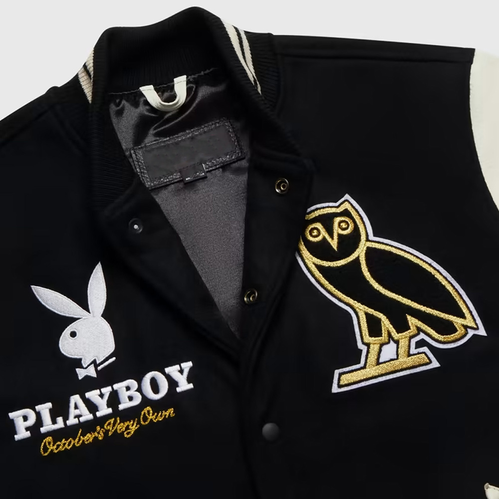 OVO Playboy Black and White Varsity Wool/Leather Jacket