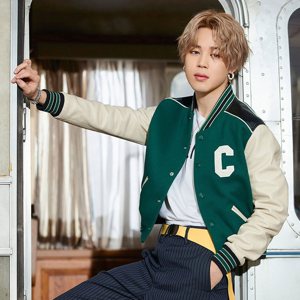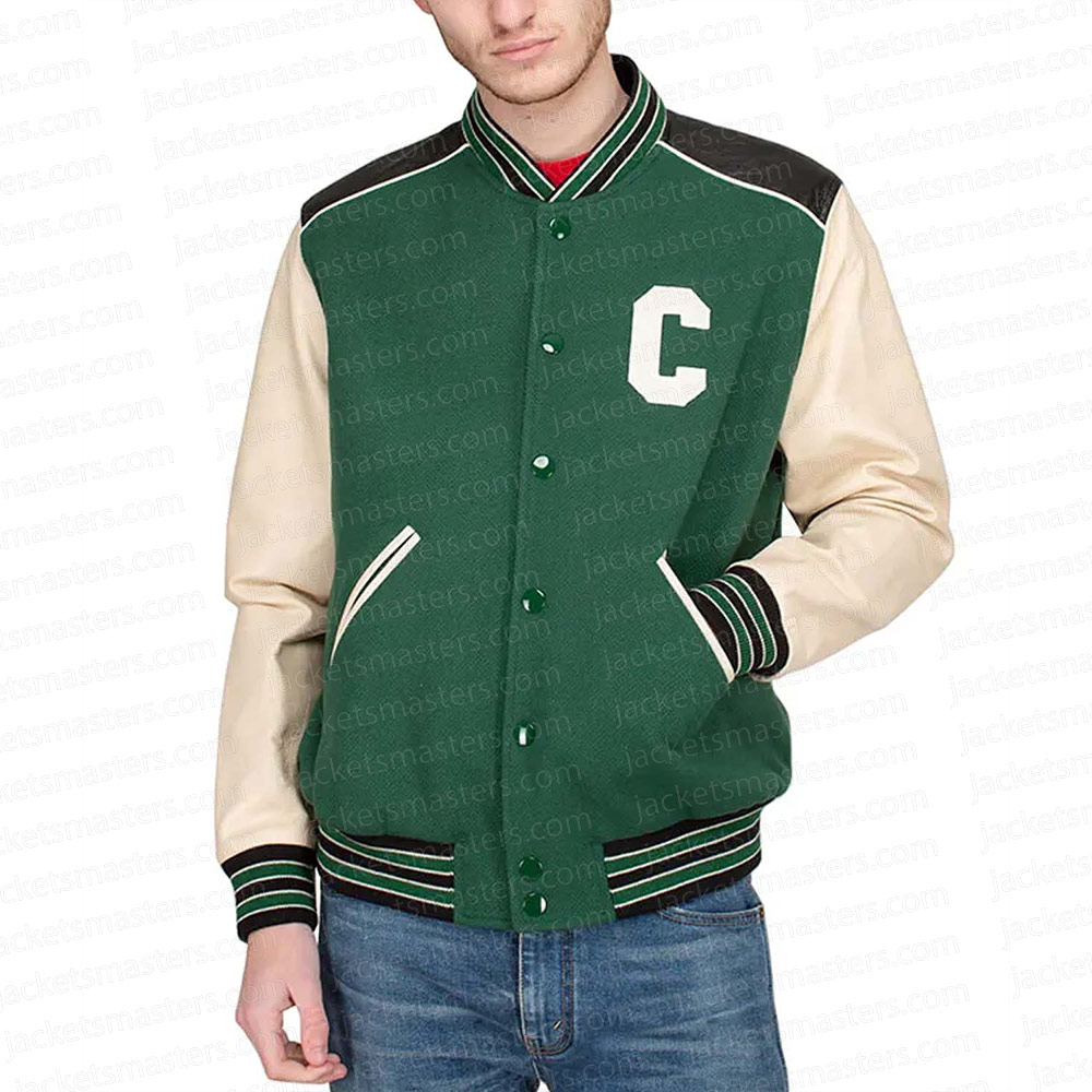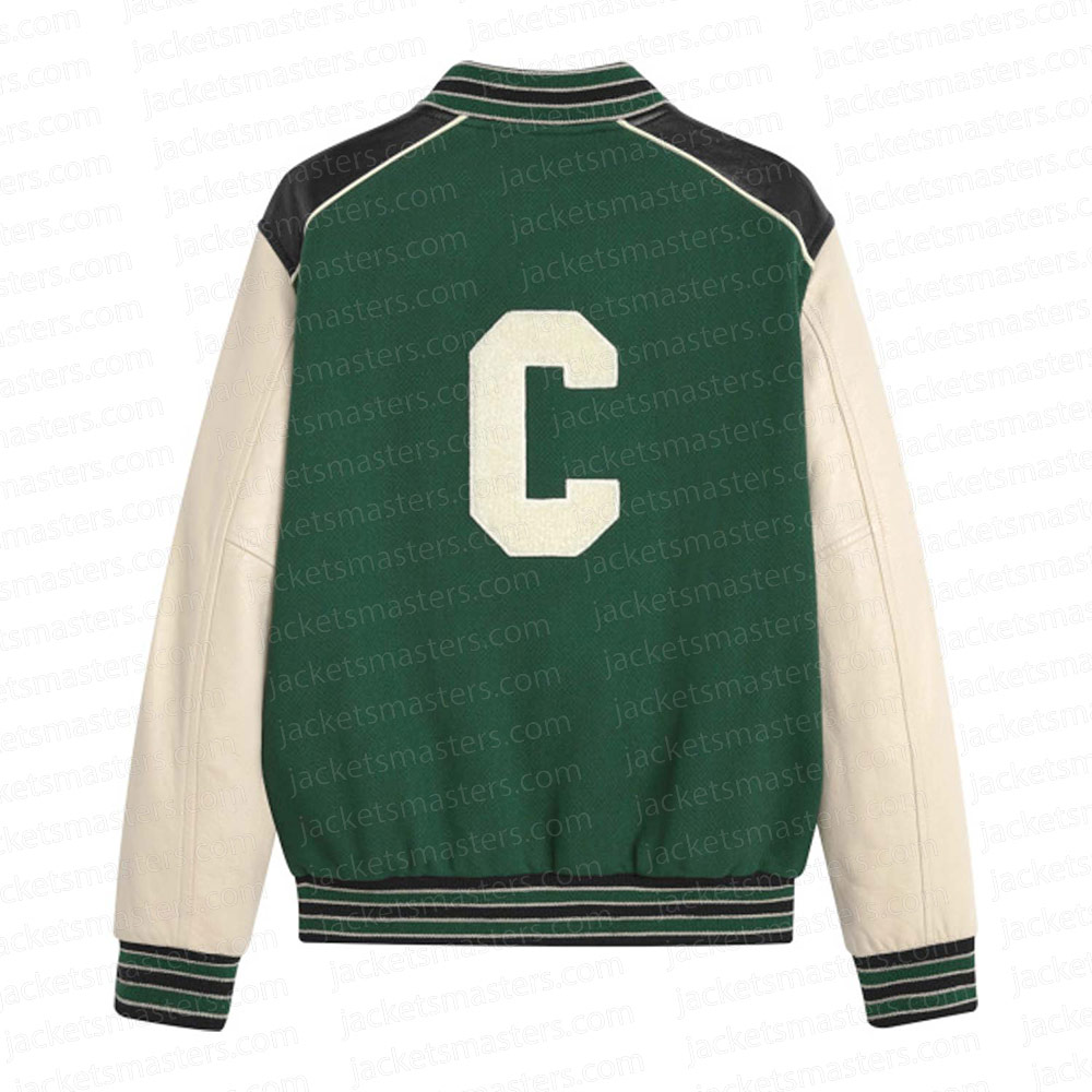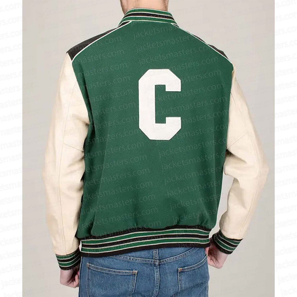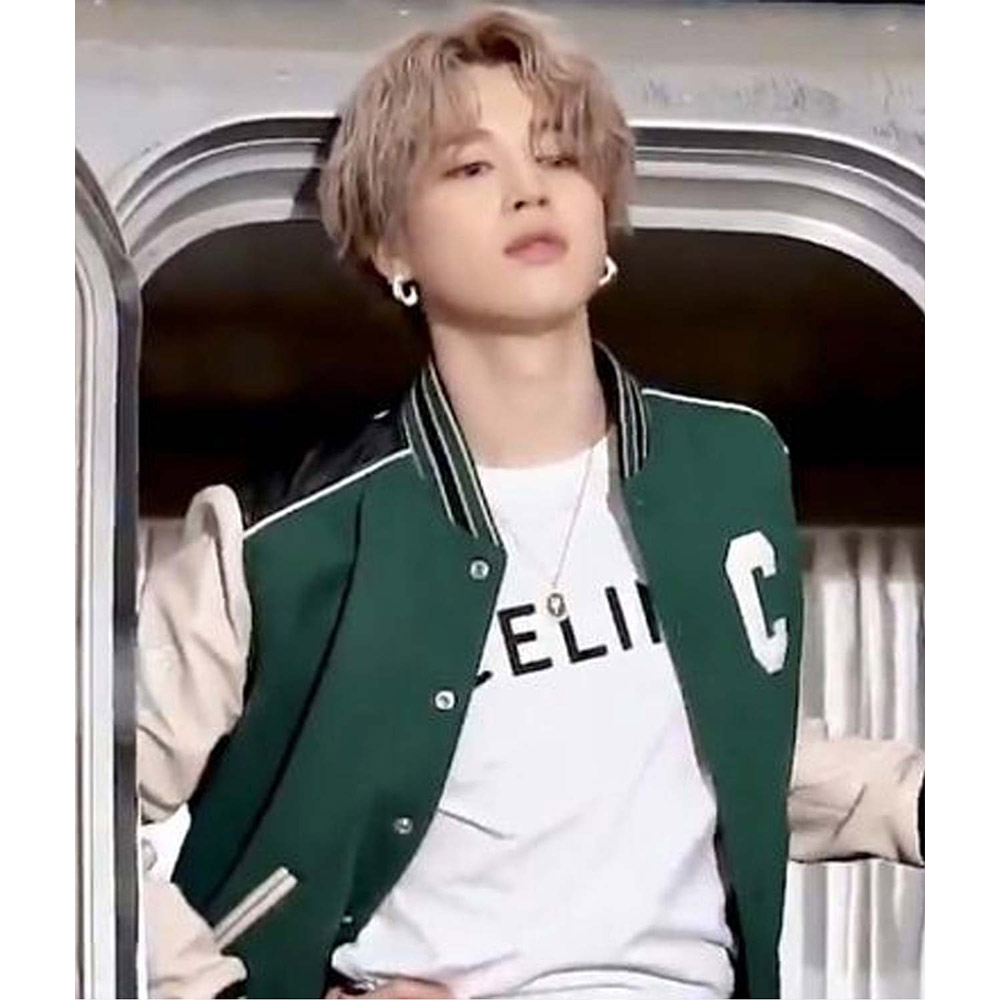 Park Jimin Green and White C Letterman Wool/Leather Jacket