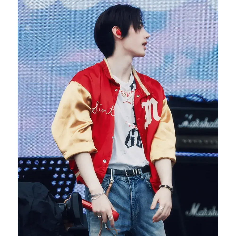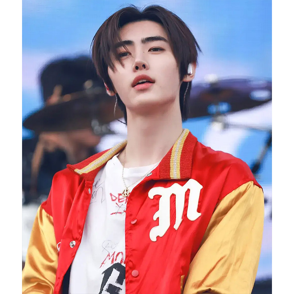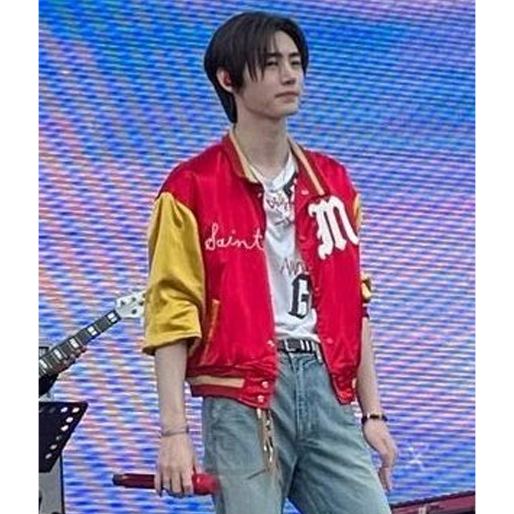 Park Sunghoon Varsity Red and Yellow Satin Jacket
