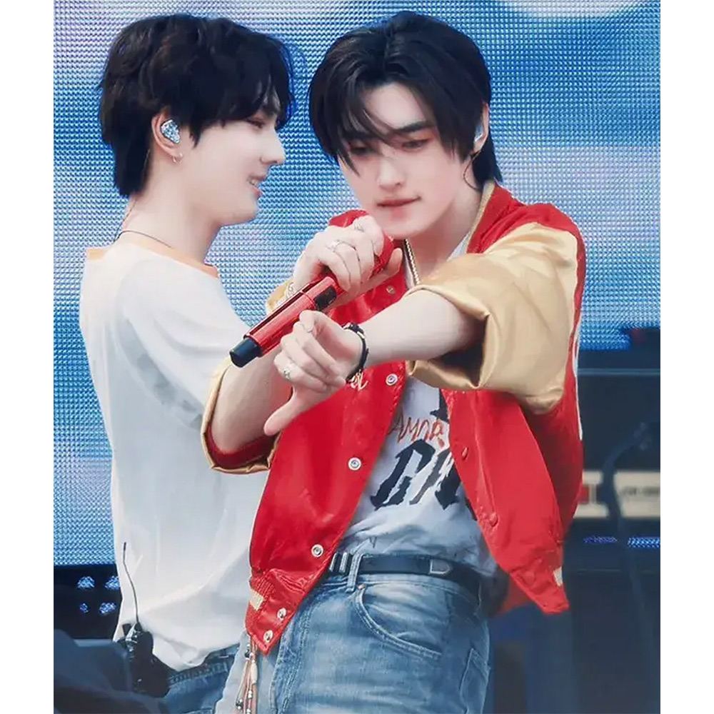 Experience the iconic Park Sunghoon jacket Crafted is made up of premium quality satin. The combination of glorious red and yellow color for an innovative and attractive look. Rib Knitted collar adds a touch of sophistication. Features a buttoned front closure. Stay warm and relaxed with the soft viscose inner lining. Long sleeves with rib knitted cuffs for a stylish appeal. Stay organized with two inside pockets. Fine quality stitching of Park Sunghoon Varsity jacket asures durability and comfort. Perfect for parties and nights out with friends. Embrace Park Jimin legendary style with this unique and captivating jacket.