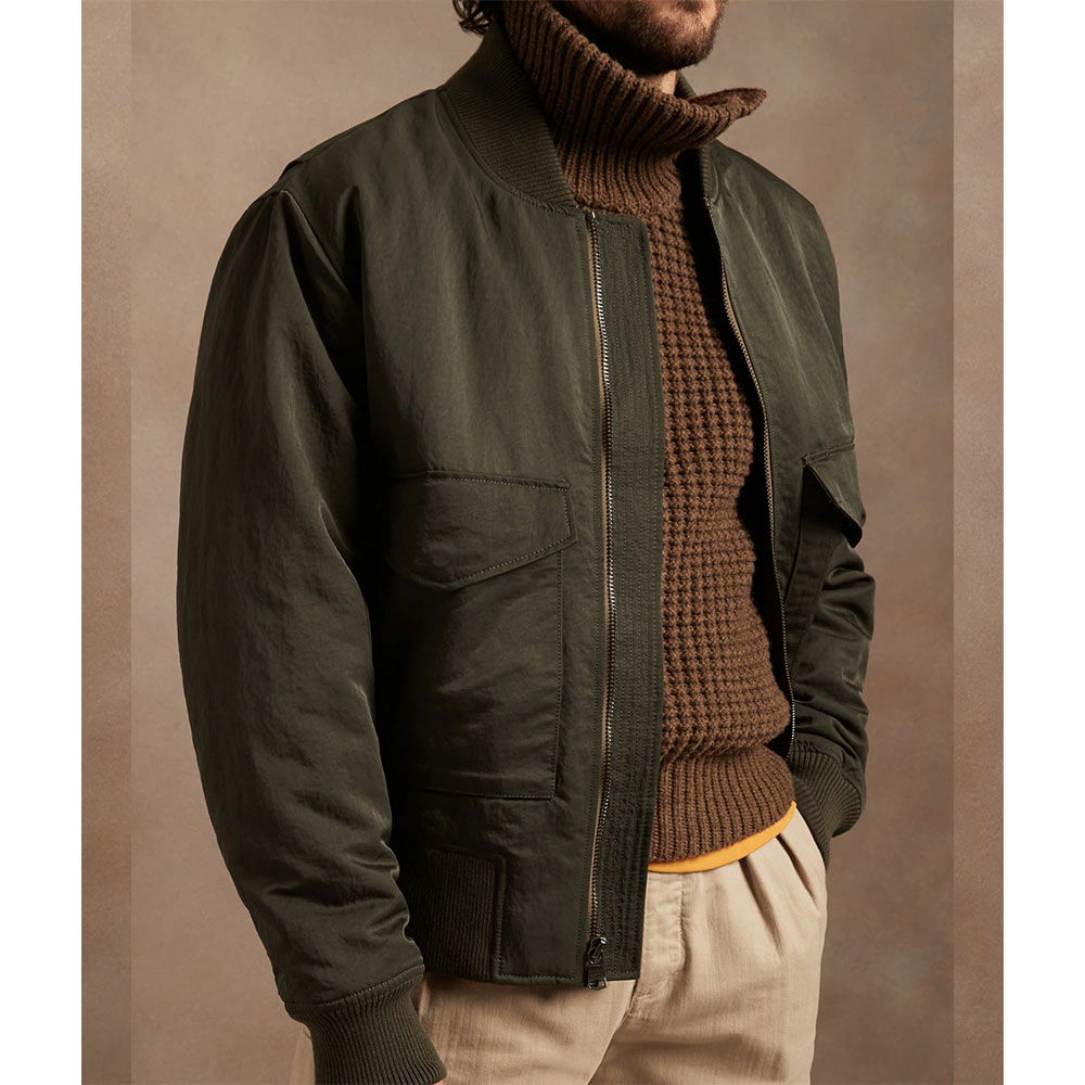 The classy Justin Coleman Jacket is made of the best quality cotton fabric and has a soft viscose lining inside. The rib-knitted collar will keep you cozier and maintain the style simultaneously. The zipper fastening closure makes it a timeless outfit that is in high demand. Who can ignore the Partner Track Roby Attal Bomber Jacket in vibrant green color? It will highlight your appearance. There are long sleeves with stylish rib-knitted cuffs. The waist pockets outside and two inside pockets provide a large storage capacity. Grab this eye-catching article and show your style.