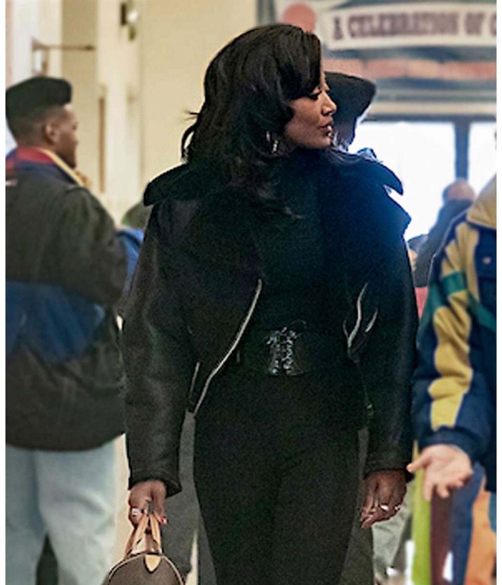Power Book III Raquel Thomas Shawl Collar Leather Black Jacket