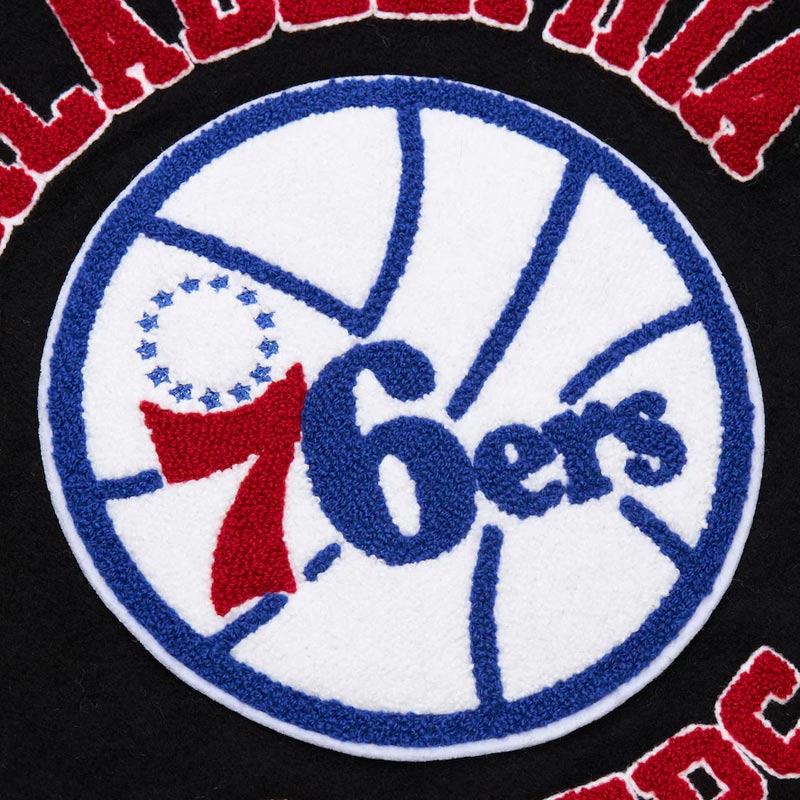Philadelphia 76ers Black Out Full-Snap Wool/Leather Varsity Jacket