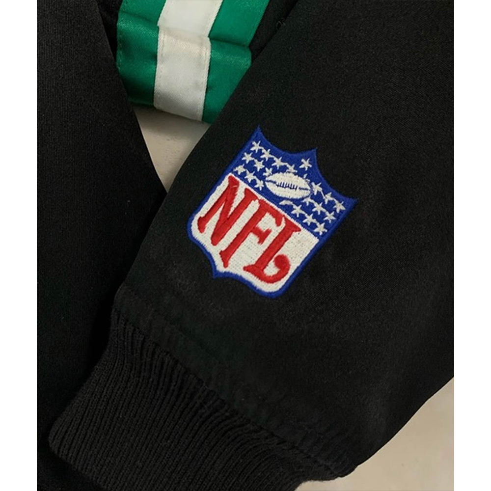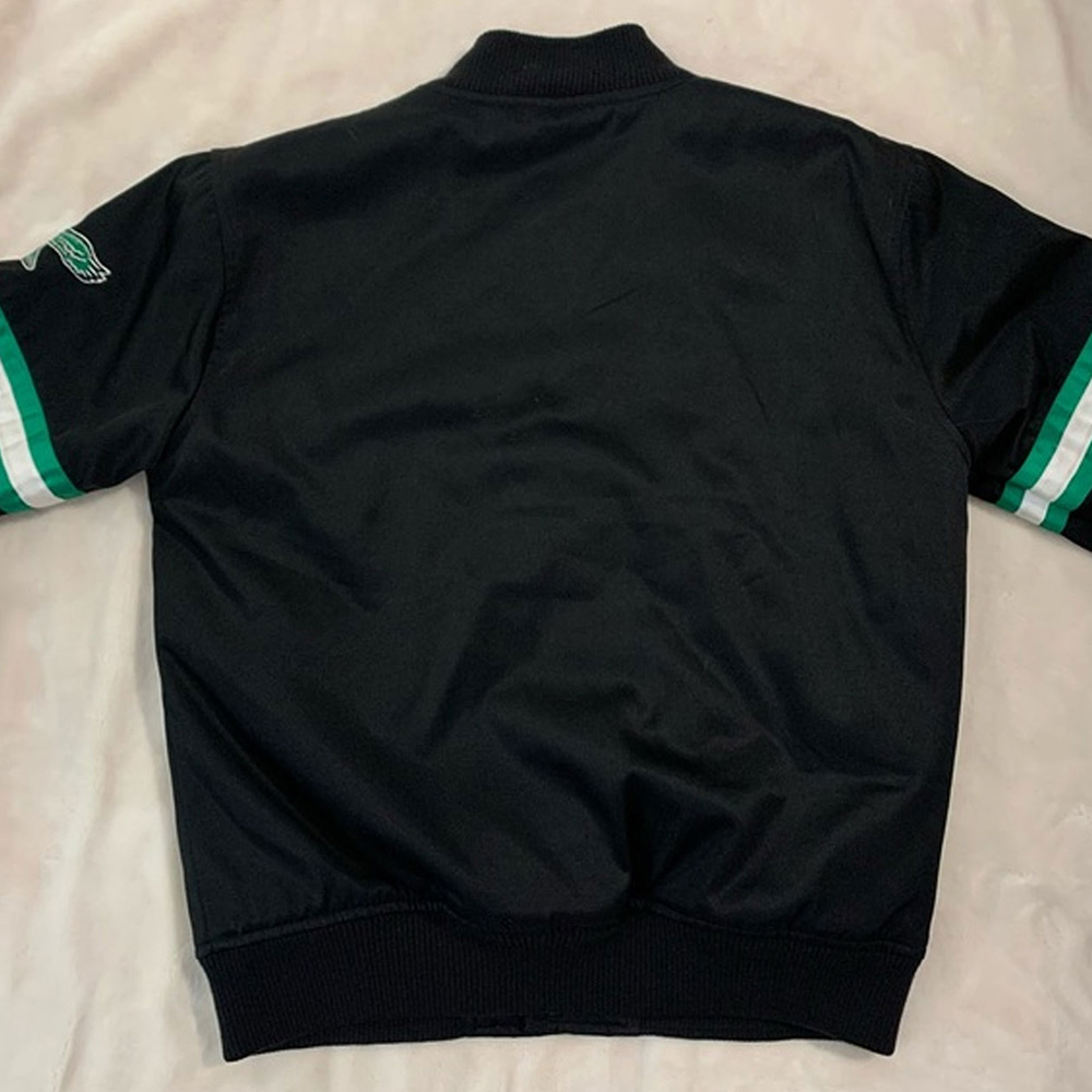 The rare Philadelphia Eagles black jacket is made from shiny satin fabric that both genders can carry. It’s available in a compelling black color, making it an eye-catching article. There is a soft viscose lining inside, which will keep the wearer in their comfort zone. This jacket has a rib-knitted collar and hemline, keeping it feasible to carry casually. The snap-tab buttoned Closure of the Philadelphia Eagles rare jacket is the most convenient feature. The long sleeves with contrasting stripes are fitted at the end with rib-knitted cuffs. There are two waist pockets outside and inside pockets, providing enough storage space. The Philadelphia Eagles wordmark on the front and logo on sleeves will make you stand out.