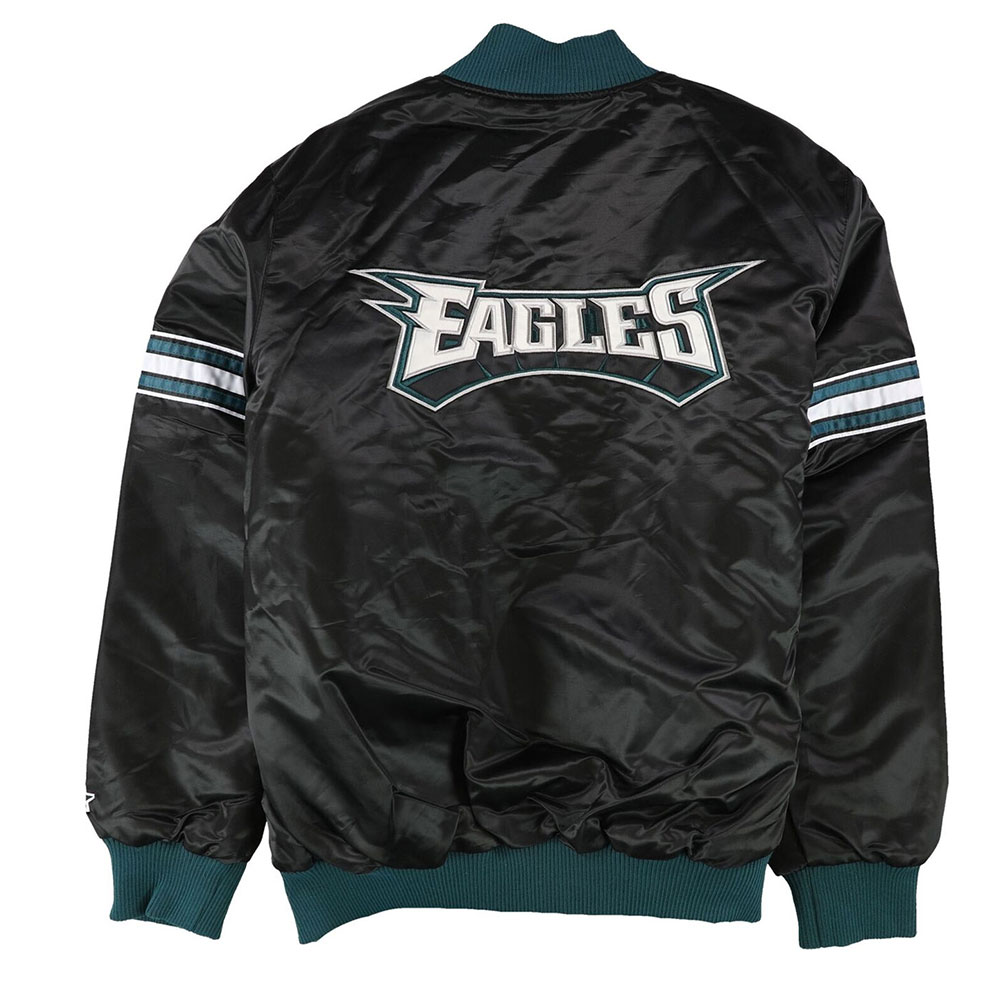 Starter Philadelphia Eagles Track Striped Satin Full-Snap Black Jacket