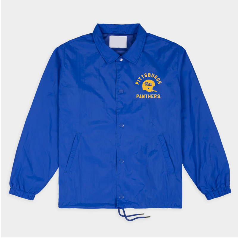 The Pitt Panthers Coaches Jacket serves fans with style as an excellent piece of outerwear clothing they can support their team with. Men and women can wear this royal blue polyester jacket which symbolizes Pittsburgh Panthers football team heritage. The viscose lining delivers peak comfort and breathes well and stays warm so fans can use this jacket for games and daily activities.