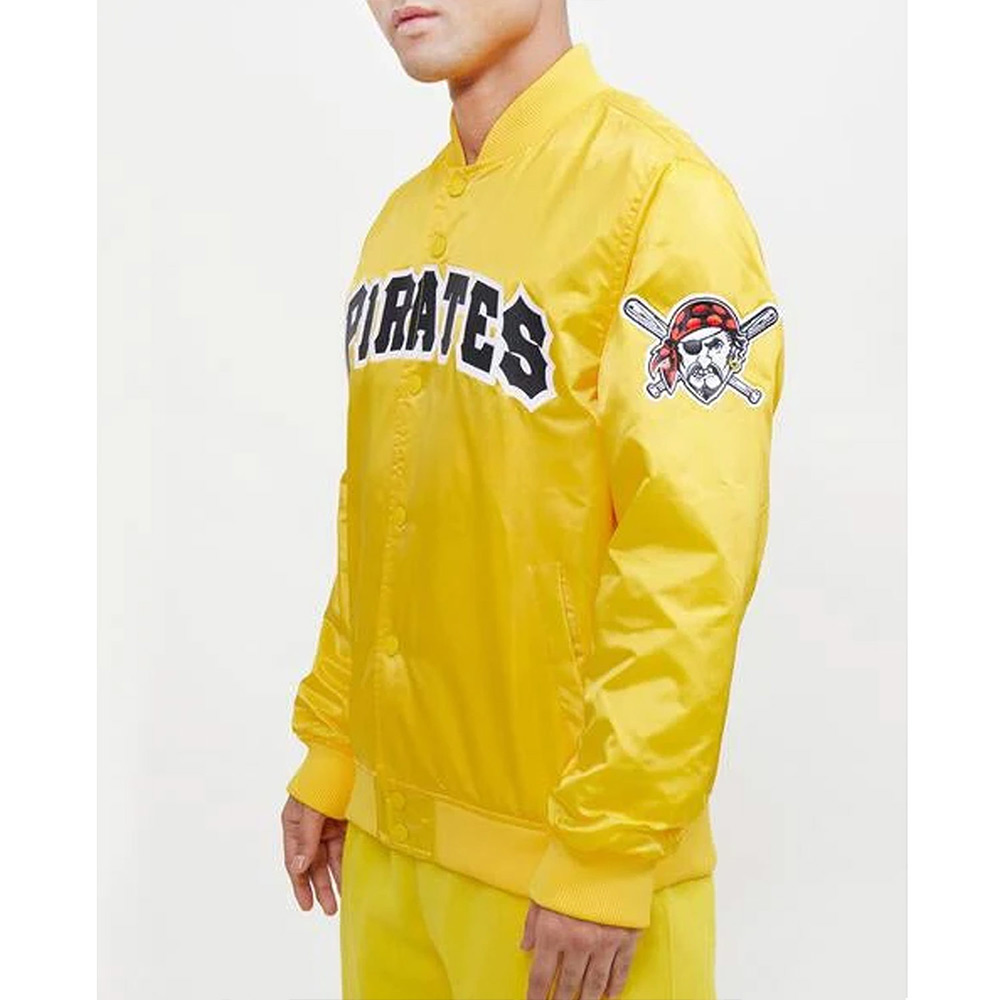 Elevate your style prowess to uncharted heights with the Wordmark Pittsburgh Pirates Yellow jacket, a true testament to unparalleled sophistication. This masterpiece has been meticulously crafted from the finest materials, with an unwavering focus on lustrous satin, ensuring that every detail exudes opulence and excellence. The harmonious yellow color radiates an aura of innovation and allure that captivates with its enchanting charm. The rib-knit collar and snap-tab buttoned front closure seamlessly unite fashion and functionality, forging a unique aesthetic that is unequivocally yours. Enveloped in the luxurious embrace of sumptuous viscose inner lining, you’re cocooned in a world of comfort and opulence that embodies timeless elegance, harmonizing seamlessly with your essence. The elongated sleeves, adorned with intricate rib-knit cuffs, bestow a touch of finesse that transports your grace to celestial dimensions. Enhanced by an inner pocket and two outer pockets, this Pittsburgh Pirates Wordmark Yellow Satin jacket adeptly balances practicality with your distinctive flair, rendering it an adaptable statement piece that elegantly complements your lifestyle. The meticulous stitching serves as an homage to craftsmanship, setting this jacket apart and offering matchless comfort and an allure that is simply peerless. This Wordmark Pittsburgh Pirates Yellow jacket transcends the realm of mere clothing. It becomes a manifestation of your sophisticated taste, making it a treasured symbol of your unique journey and impeccable style.