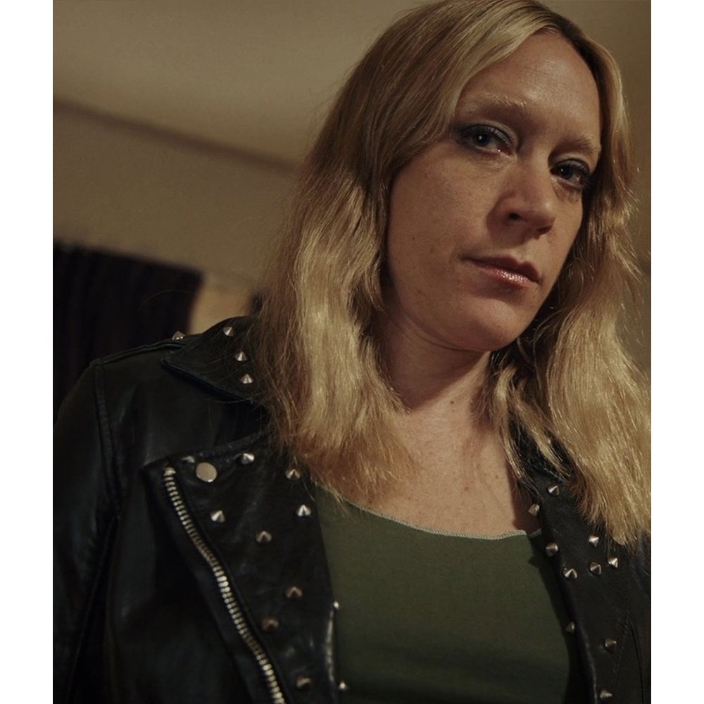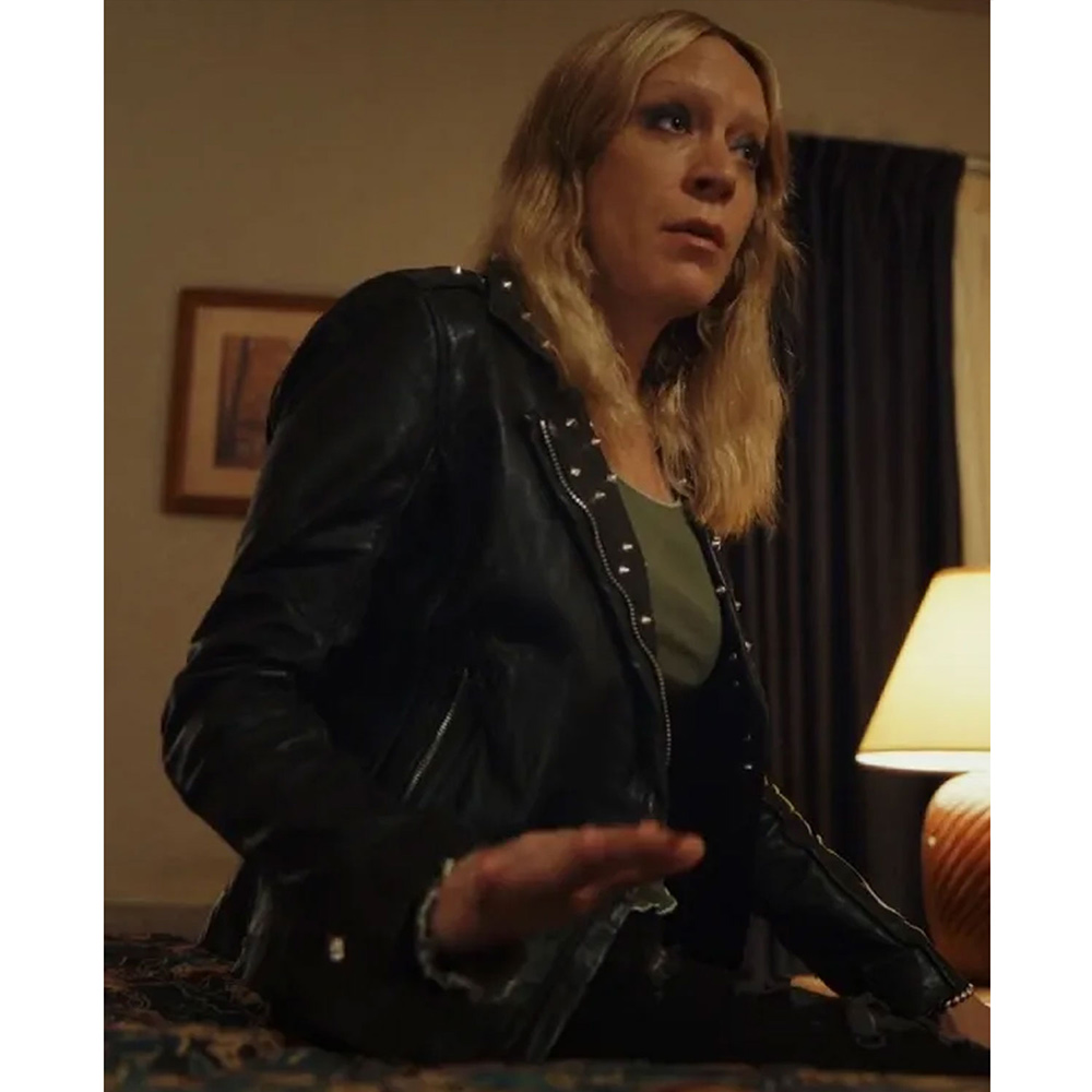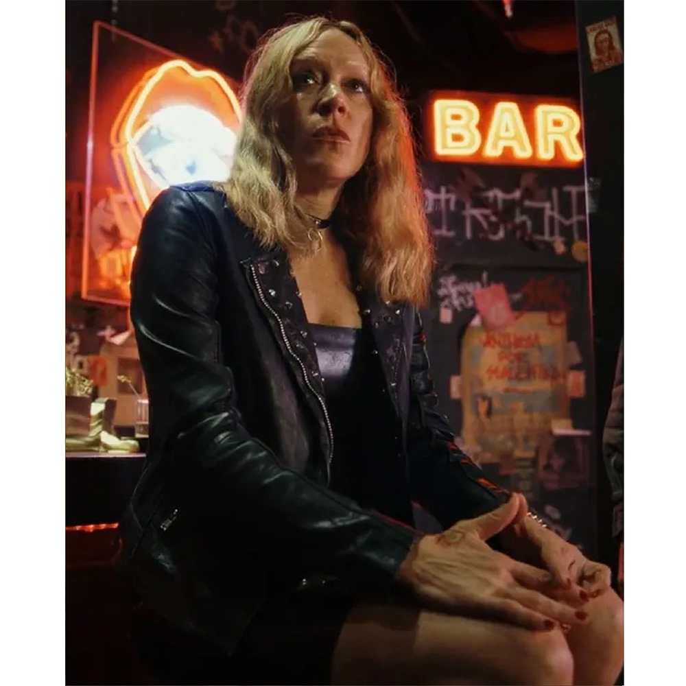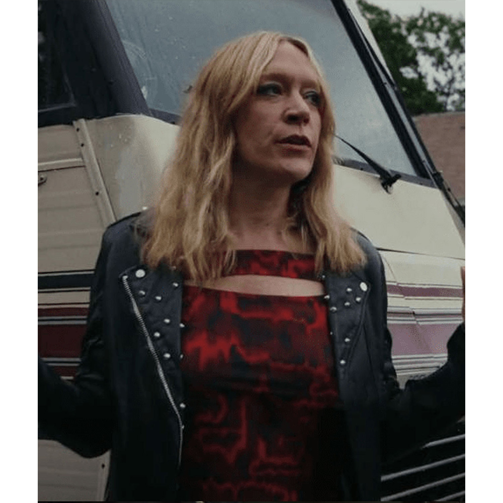 Chloë Sevigny Poker Face Ruby Ruin Studded Black Leather Jacket