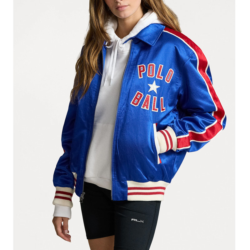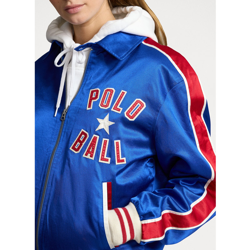 Polo Ball Full-Zip Royal Bomber Satin Jacket