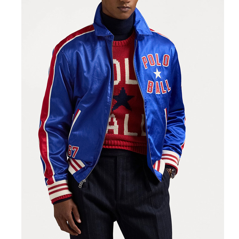 The sleeves of the Polo Ball Bomber Satin Jacket are fitted and are fully length and are adorned with stripes that give it the appearance of a bomber jacket style. The ribbed cuffs make it a perfect fit and you’ll be warm and stylish. Two slanted waist pockets are useful for storing your stuff; two inner pockets are perfect for carrying small valuable items.