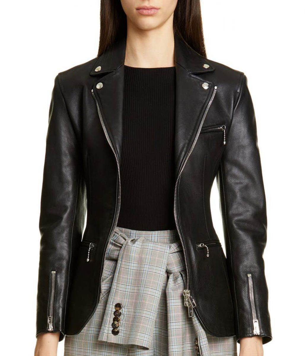 The Abigael Jameson Caine leather jacket is made from high-quality genuine leather. The jacket is available in mesmerizing black color, which gives it an innovative and striking look. The collar of the jacket is peak lapel style. It has a branded YKK front zipper closure. A soft viscose inner lining of the jacket keeps you calm and relaxed. The sleeves of the Charmed Poppy Drayton leather jacket are long ends with zipper cuffs. The jacket has two front zippered pockets and two pockets on the inside for keeping stuff. The fine quality stitching of the Aurelio Casillas leather jacket makes it durable and desirable to wear. The jacket is an ideal choice for fashion fanatics.