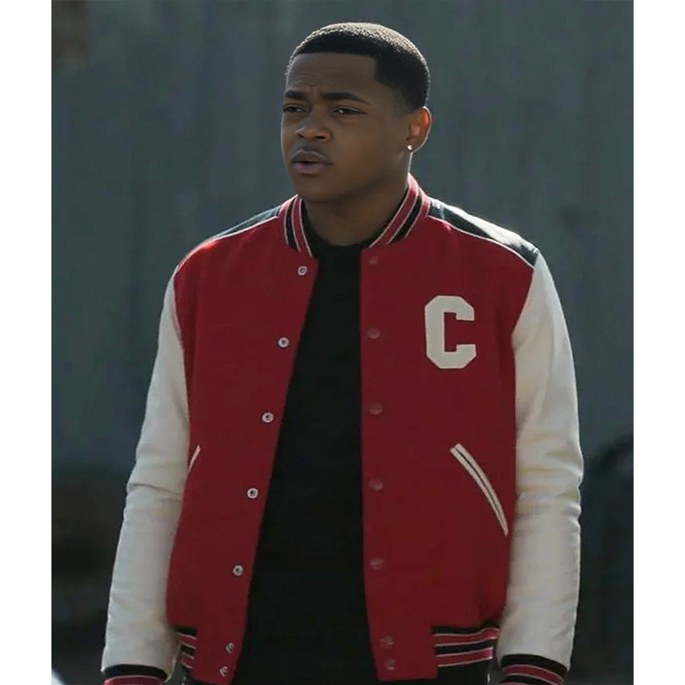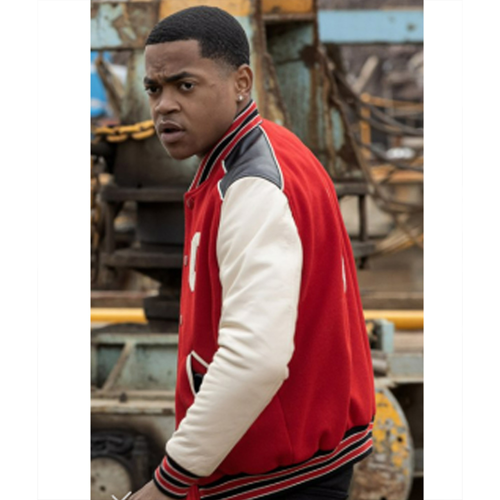 Capture the dynamic and bold style with Tariq St. Patrick varsity jacket, it is for both men and women and Michael Rainey Jr. rocks this stunning jacket in the show, Ghost. This jacket is made up of a fine wool material for the body and leather for the sleeves; it is stylish, warm and long-lasting. The red and white color combination used on the jacket makes it very attractive and perfect for those who want to stand out in their fashion.