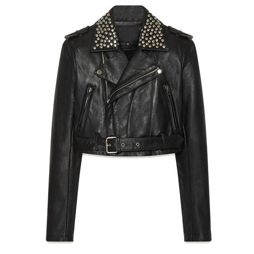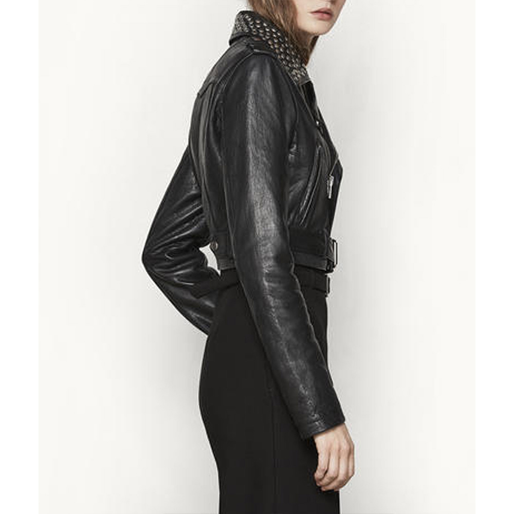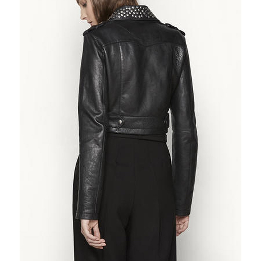 Elevate your style with the Hanna Marin Leather jacket, meticulously crafted from high-quality genuine leather for an aura of sophistication. The mesmerizing black color adds an innovative and alluring touch, setting it apart from the crowd. With its lapel style collar and asymmetrical zipper front closure, this Pretty Little Liars Ashley Benson Studded Leather jacket exudes timeless elegance. Stay warm and cozy with the soft inner viscose lining, ensuring comfort throughout the day. The long sleeves of Hanna Marin Leather jacket with open hem cuffs elevate its stylish appeal, adding a sleek and polished look. Experience the convenience of two inner and two side pockets, providing ample storage space for your essentials. The impeccable stitching guarantees durability, making it a worthwhile investment for your wardrobe.