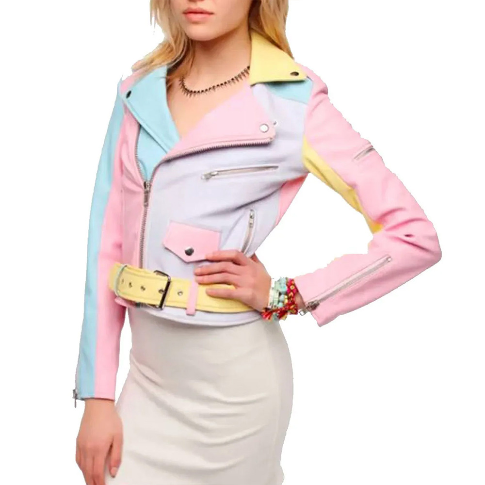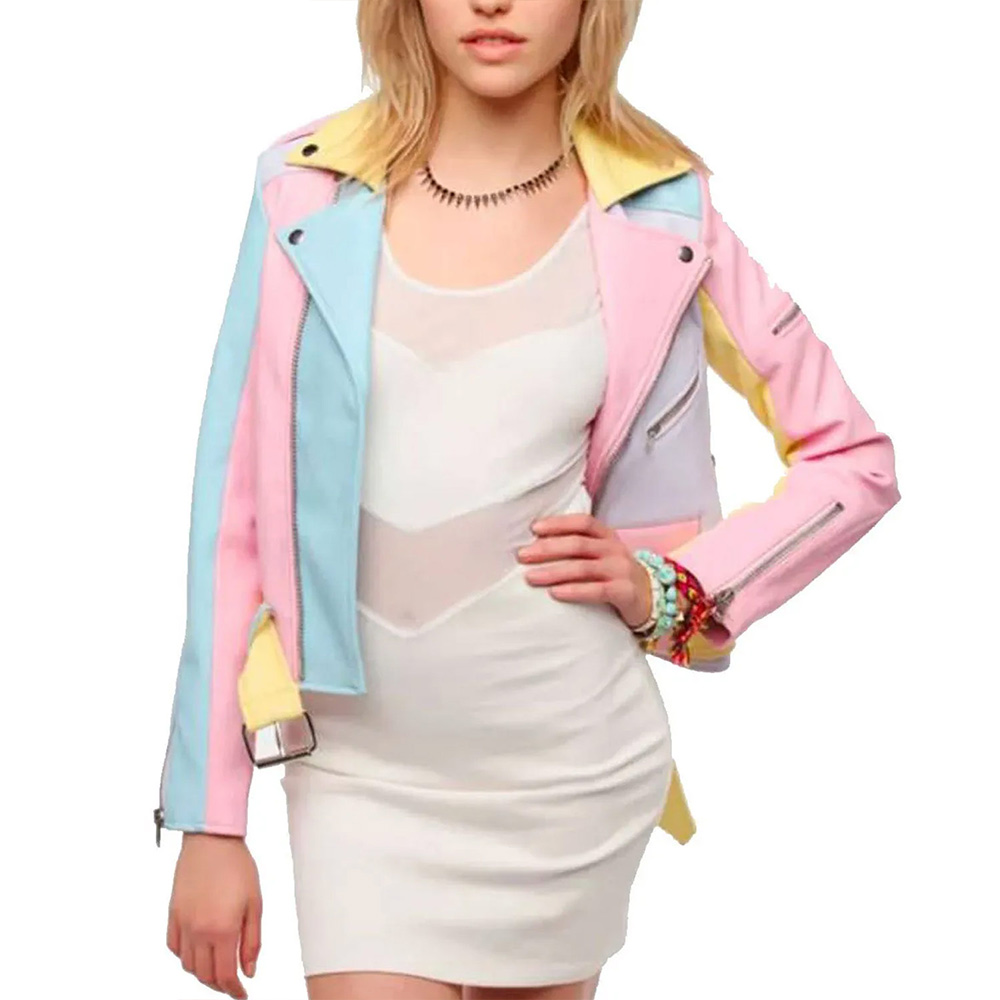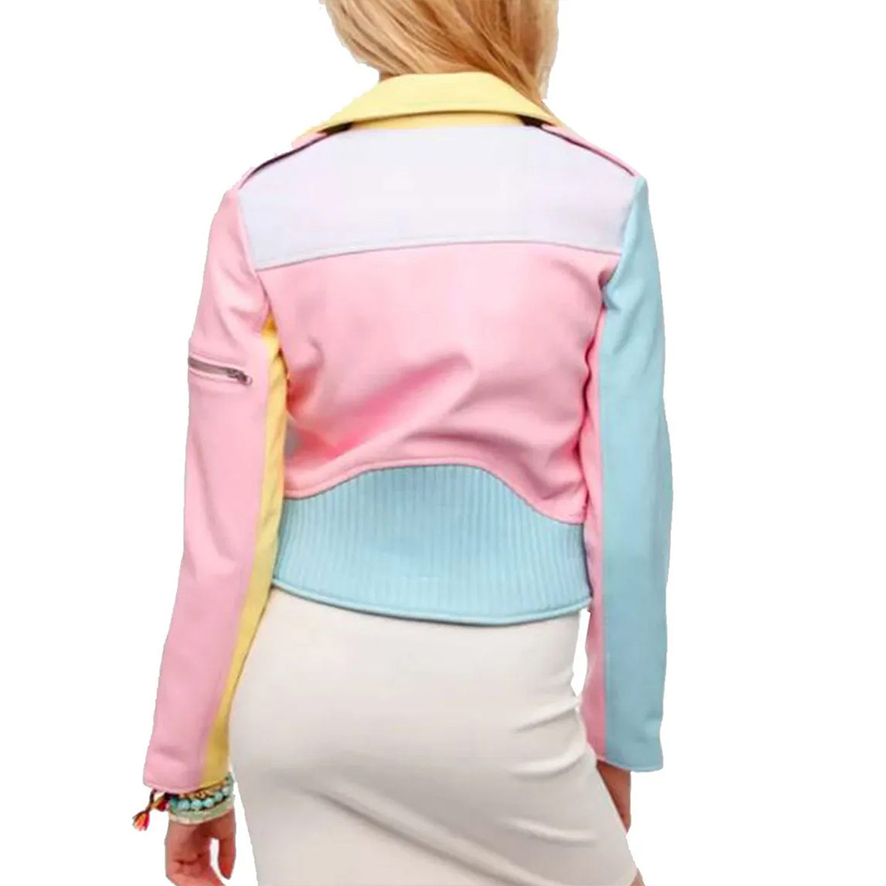 Pretty Little Liars Aria Montgomery Pastel Rainbow Leather Moto Jacket
