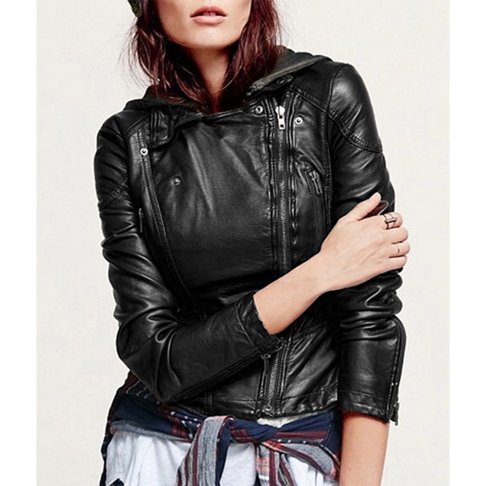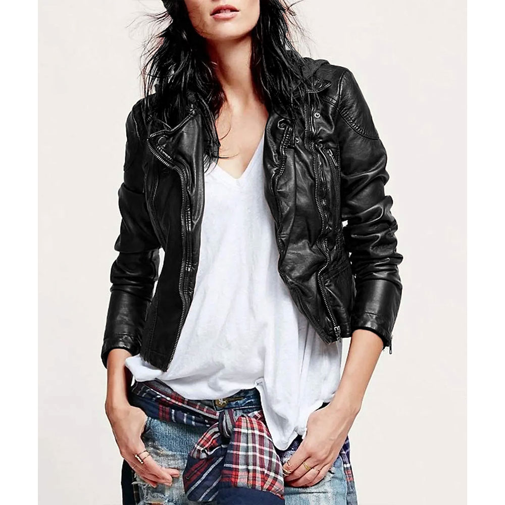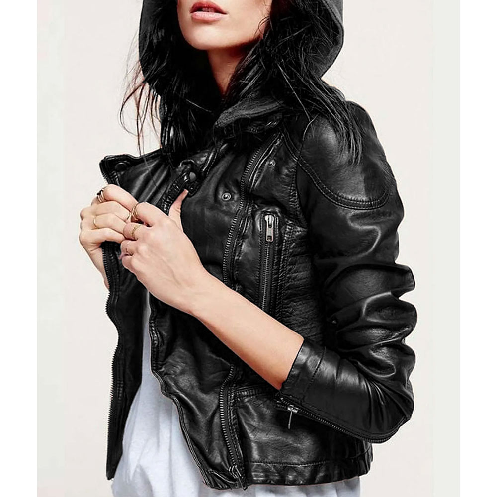 Step into the world of mystery and intrigue with the “Sara Harvey Leather Jacket,” a stunning homage to Sara Harvey’s bold style in Pretty Little Liars Season 6. This jacket is designed to make a statement and add a touch of rebellion to your wardrobe. Crafted from genuine black leather, this jacket exudes an aura of sophistication and edge. The leather is not only durable but also incredibly stylish, ensuring that you stand out in any crowd. The unique asymmetrical zipper front closure is a bold and distinctive feature that sets this jacket apart. The hooded collar is both fashionable and practical, giving you the option to stay warm and cozy when the weather takes a turn. It adds an urban, contemporary flair to the Pretty Little Liars S06 Dre Davis Leather Jacket design. Long sleeves with zipper cuffs provide a snug fit and add to the jacket’s overall edgy aesthetic. The “Sara Harvey Leather Jacket” is a testament to fine quality stitching, promising a garment that’s built to last and retain its stylish edge.