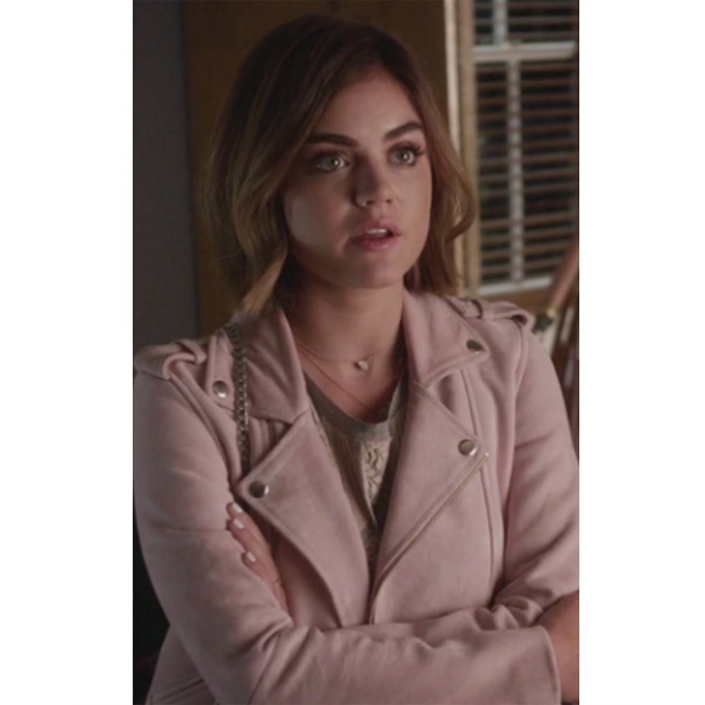 Pretty Little Liars Season 6 Aria Montgomery Pink Leather Biker Jacket