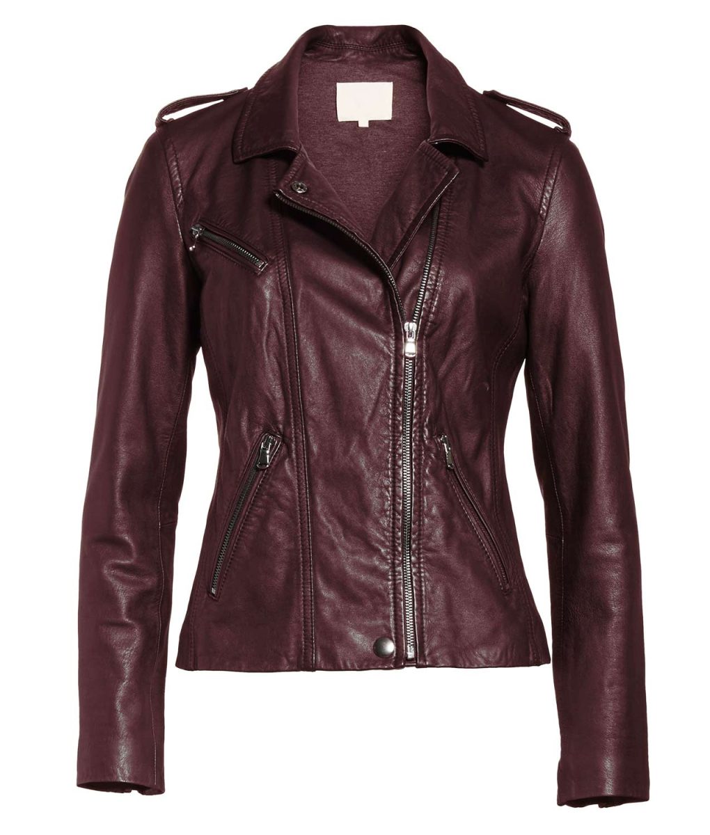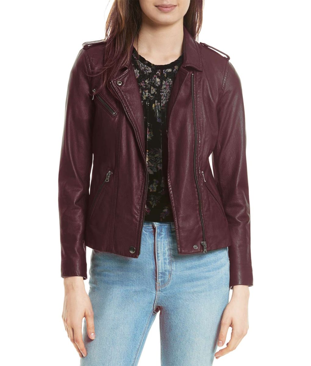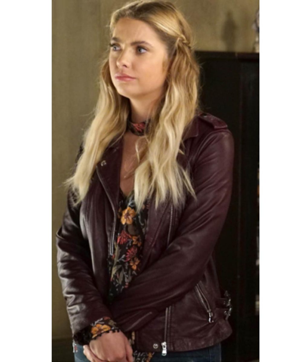 Pretty Little Liars Season 7 Hanna Marin Maroon Leather Biker Jacket