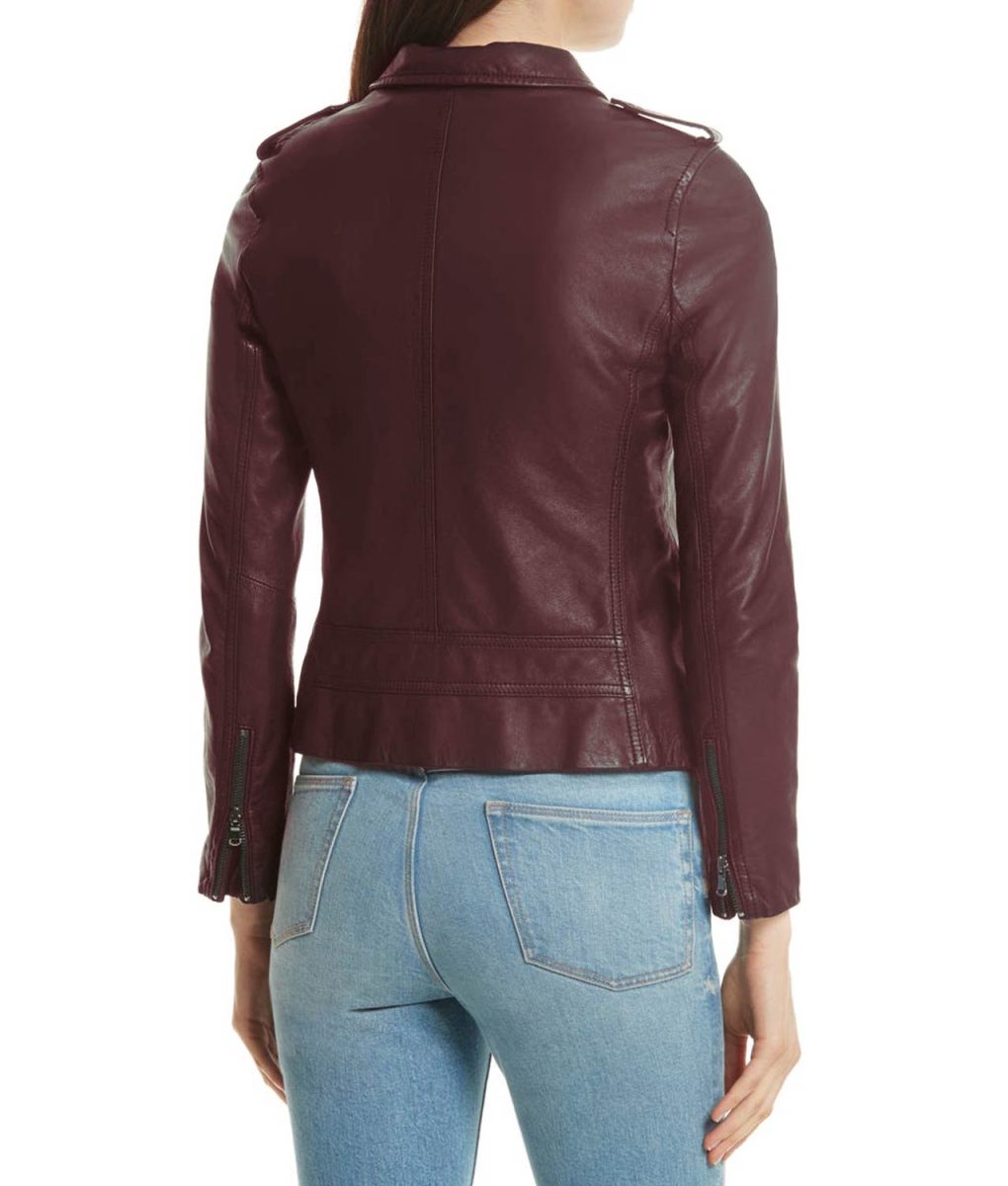 Elevate your style with the Hanna Marin Maroon Leather jacket, meticulously crafted from high-quality genuine leather for an aura of sophistication. The majestic maroon color adds an innovative and alluring touch, setting it apart from the crowd. With its shirt style collar and branded YKK zipper front closure, this Pretty Little Liars S07 Ashley Benson Maroon Leather jacket exudes timeless elegance. Stay warm and cozy with the soft inner viscose lining, ensuring comfort throughout the day. The long sleeves of Hanna Marin Maroon Leather jacket with zipper cuffs elevate its stylish appeal, adding a sleek and polished look. Experience the convenience of two inner and two chest pockets, providing ample storage space for your essentials. The impeccable stitching guarantees durability, making it a worthwhile investment for your wardrobe.