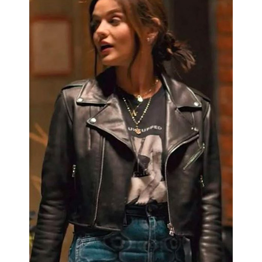 Indulge in the timeless appeal of the Nicole Matthew Black Leather Jacket, expertly crafted from genuine leather. The deep black color exudes elegance, reminiscent of Lucy Hales portrayal of Nicole Matthew. The lapel-style collar and branded YKK zipper front closure add a touch of sophistication and functionality to this remarkable jacket. Wrapped in soft viscose lining, Puppy Love Lucy Hale Leather Jacket ensures both comfort and style. The long sleeves with zipper cuffs provide a classic look suitable for all genders. This jacket features two outside pockets and one inner pocket, offering a blend of convenience and fashion. Elevate your style with this exquisite piece, inspired by the film Puppy Love.