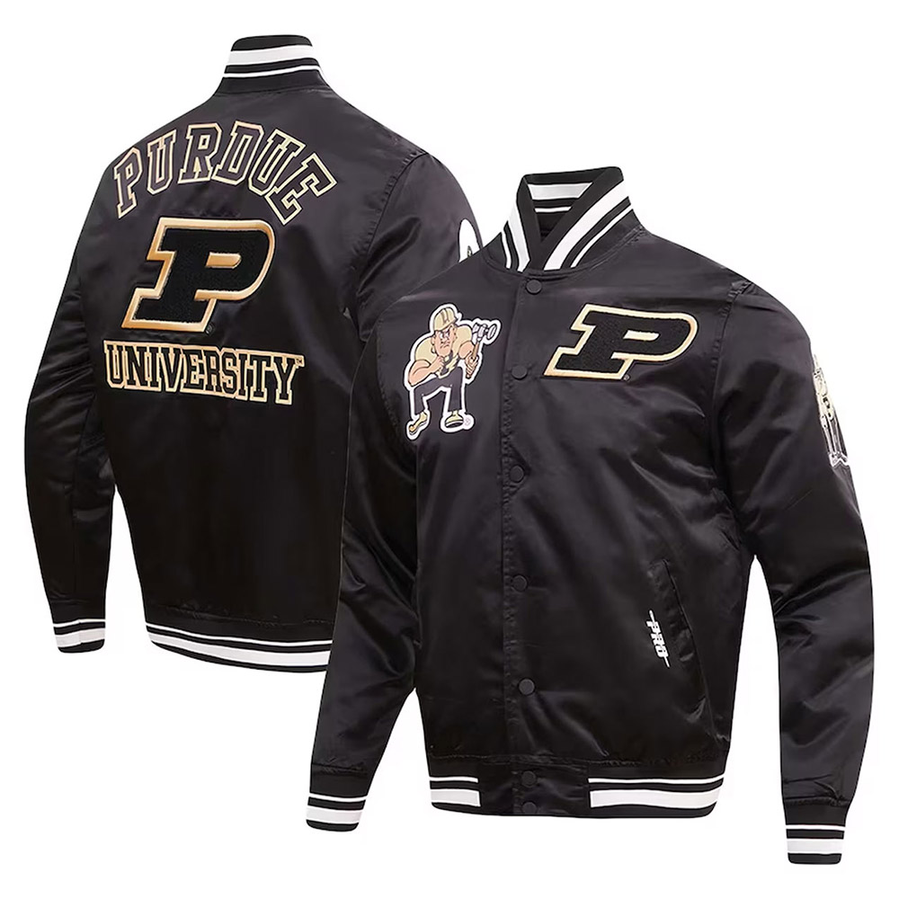 Black Purdue Boilermakers Classic Satin Full Snap Jacket