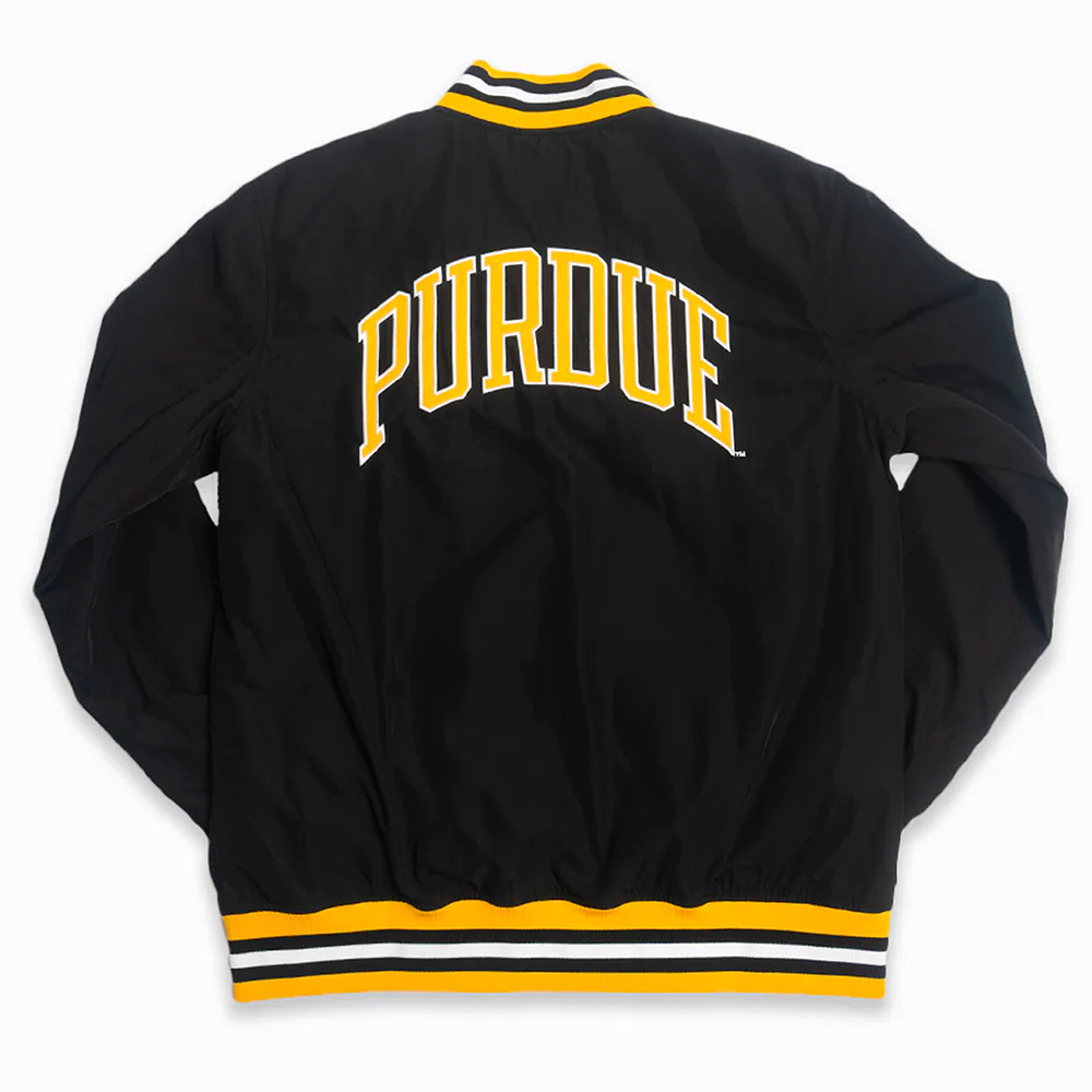 Black Vintage Pete Purdue Boilermakers Varsity Full-Snap Satin Jacket
