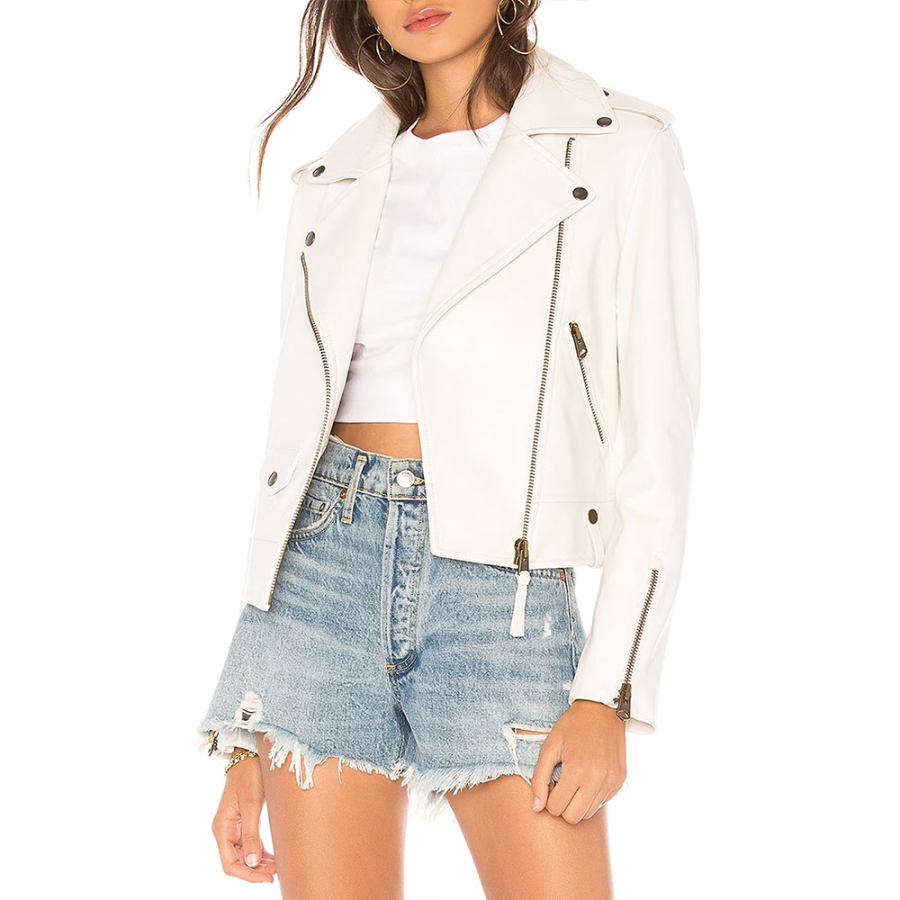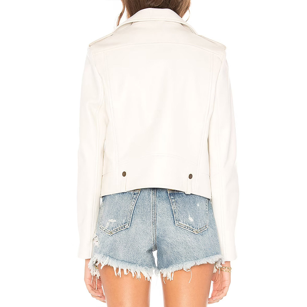 Unleash your fashion prowess with the Teresa Mendoza Leather jacket, skillfully crafted from premium quality genuine leather. Its glorious white color exudes innovation and boldness, creating an eye-catching look. This Queen of the South Alice Braga Leather jacket features a lapel style collar and a branded YKK zipper front closure for a touch of style and convenience. The soft viscose inner lining ensures warmth and relaxation, while the long sleeves with zipper cuffs add a sophisticated touch. With two inner and two side pockets, this Teresa Mendoza Leather jacket offers practicality alongside comfort. The fine quality stitching ensures a comfortable and desirable fit, making it an ideal choice for any party.