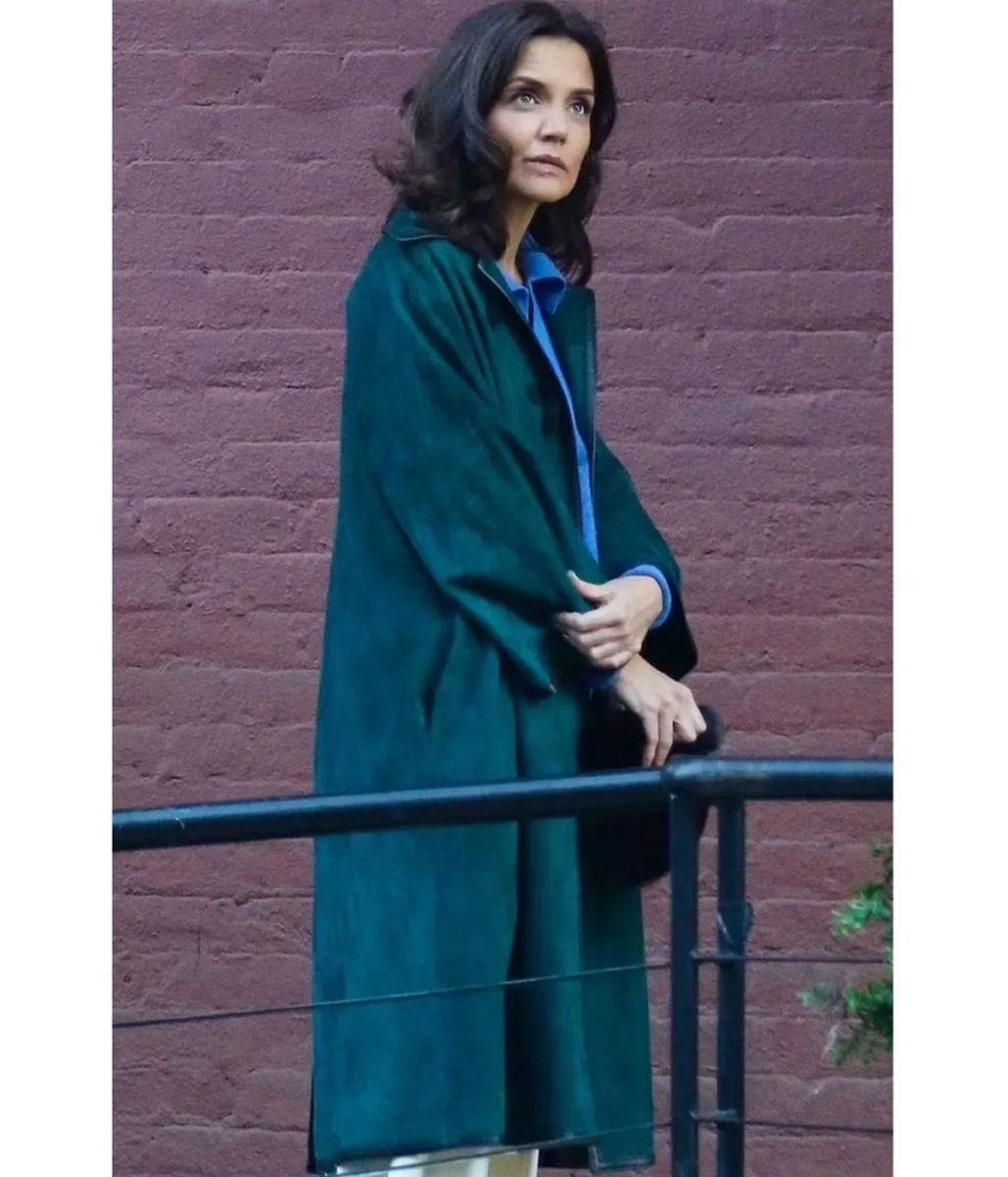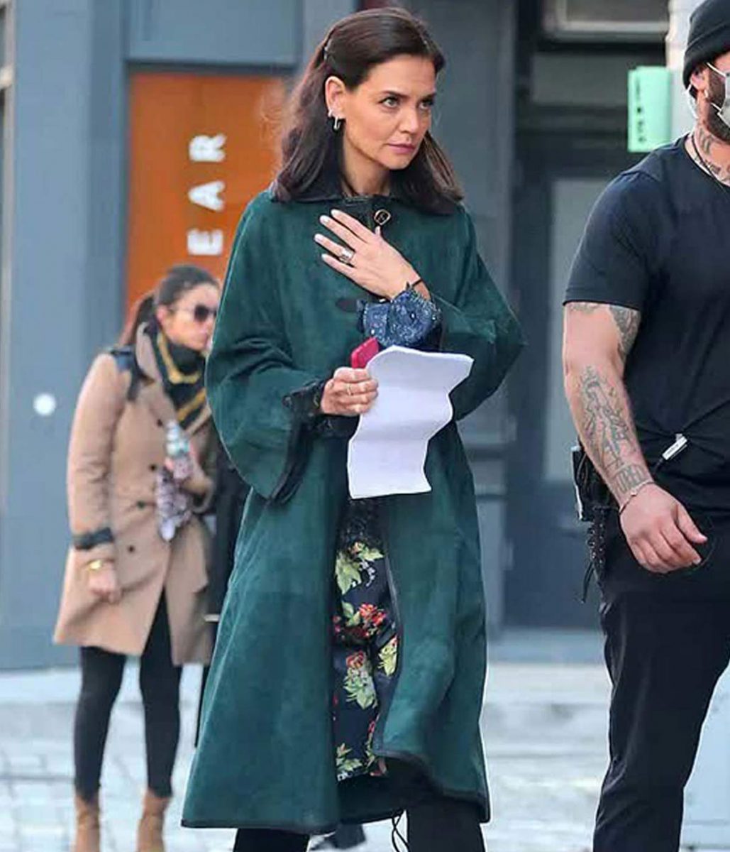 The Katie Holmes Rare Objects coat is made from high-quality suede leather. The coat is available in majestic green color, which gives it an innovative and enchanted look. The coat has turn down style collar. The coat has a classical buttoned front closure. A soft viscose inner lining of the coat keeps you warm and relaxed. The sleeves of the Katie Holmes Rare Objects coat are long with open hem cuffs. The coat has one inner and two outer waist pockets. The fine quality stitching of the Katie Holmes Rare Objects coat makes it durable and desirable to wear. The coat is an ideal choice for stylish women to wear in winter for night outs.