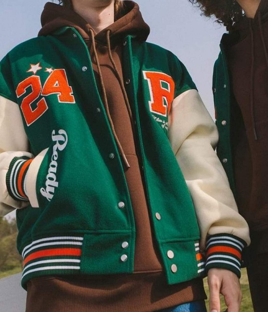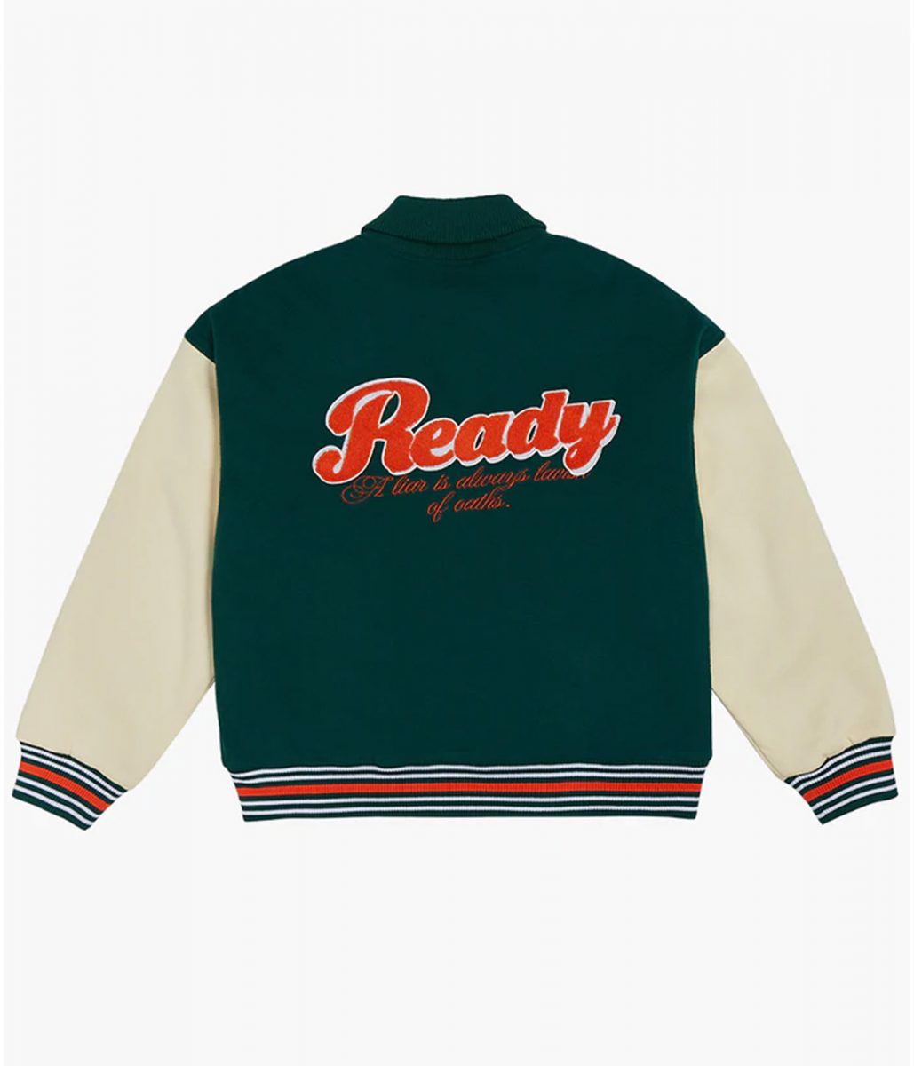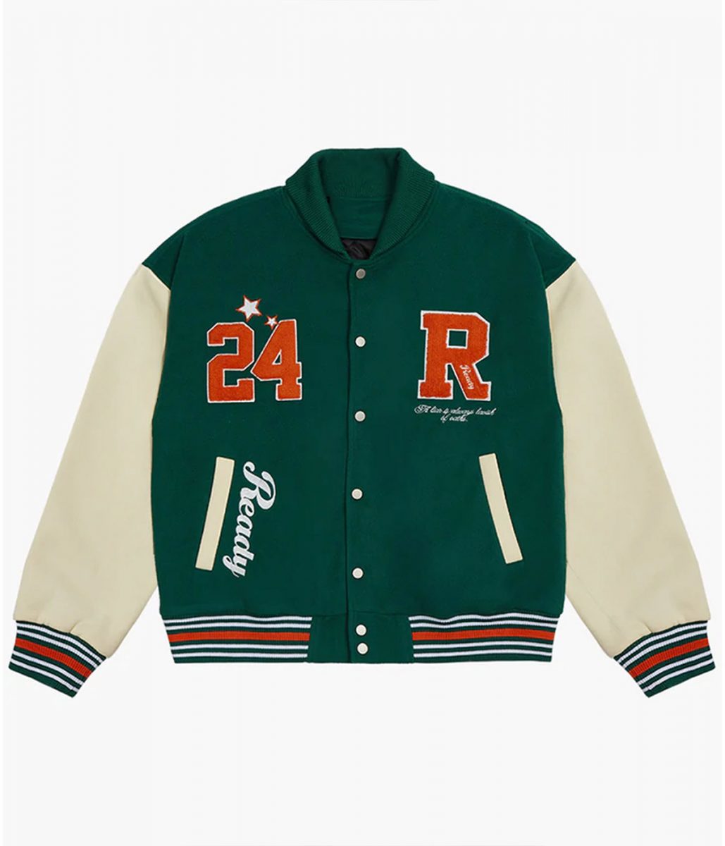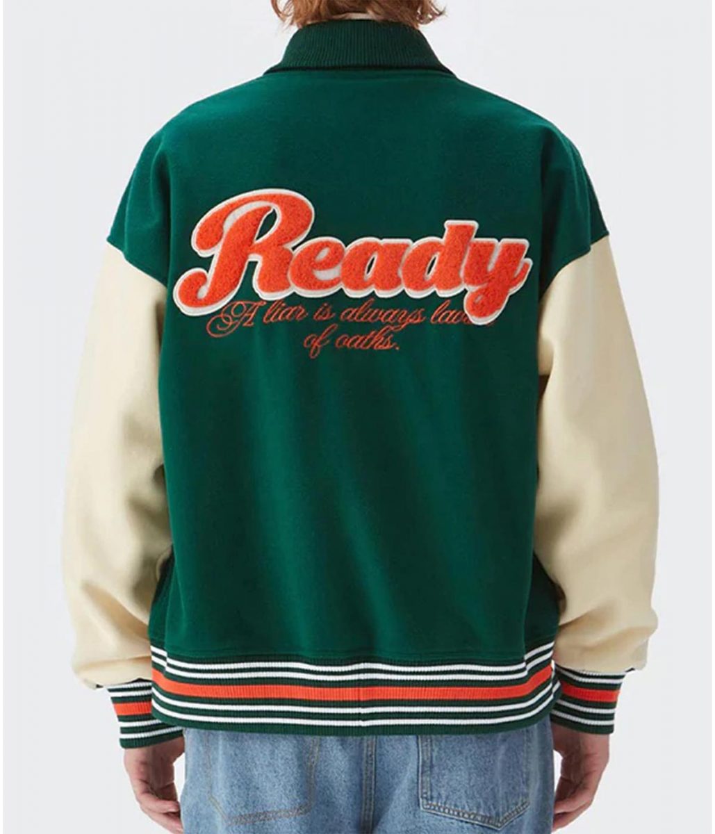 Ready Varsity Letterman Wool Green and Off White Jacket