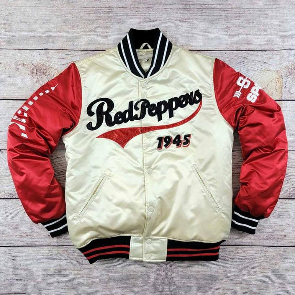 The Red Pepper Jacket adds a touch of whimsy with its satin material to your wardrobe. Its playful design and rich and passionate combination of red and white bring a sense of elegance and fun to your ensemble. The eye-catching Red Pepper red and white Jacket offers a relaxed fit with full-snap closure and urban edge. Stand out in the crowd with this charismatic attire with graphics on the front, back and sleeves.