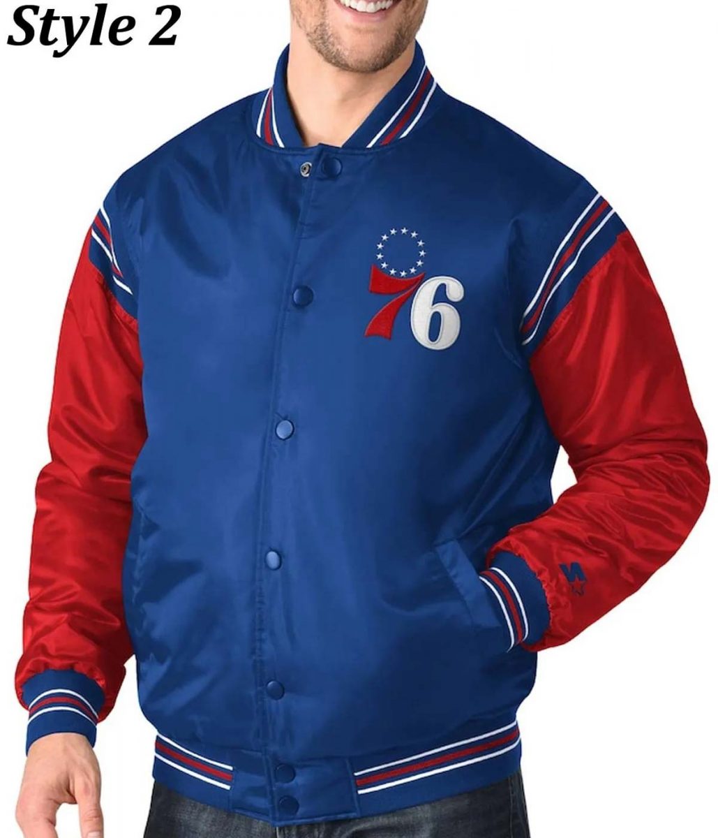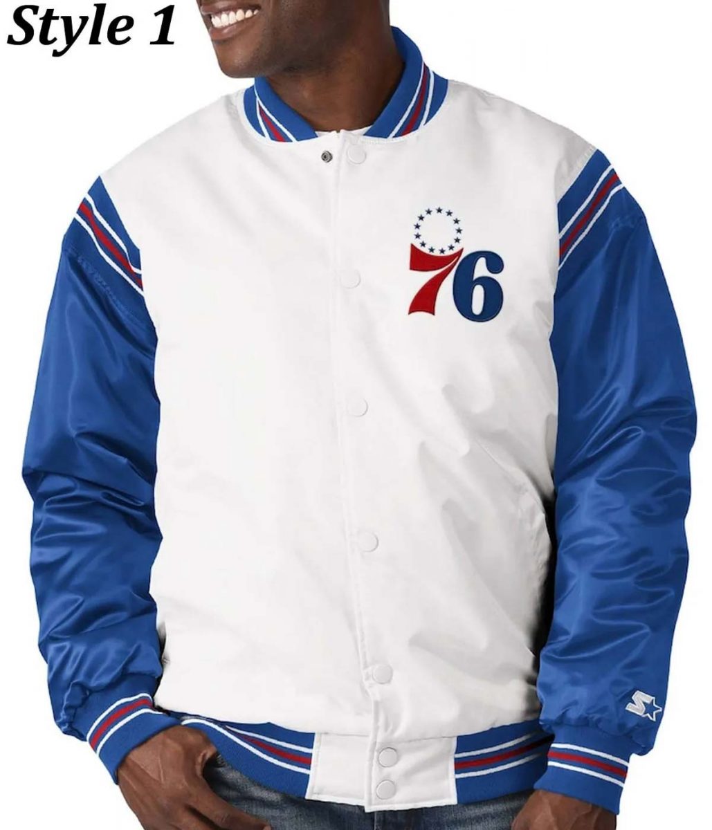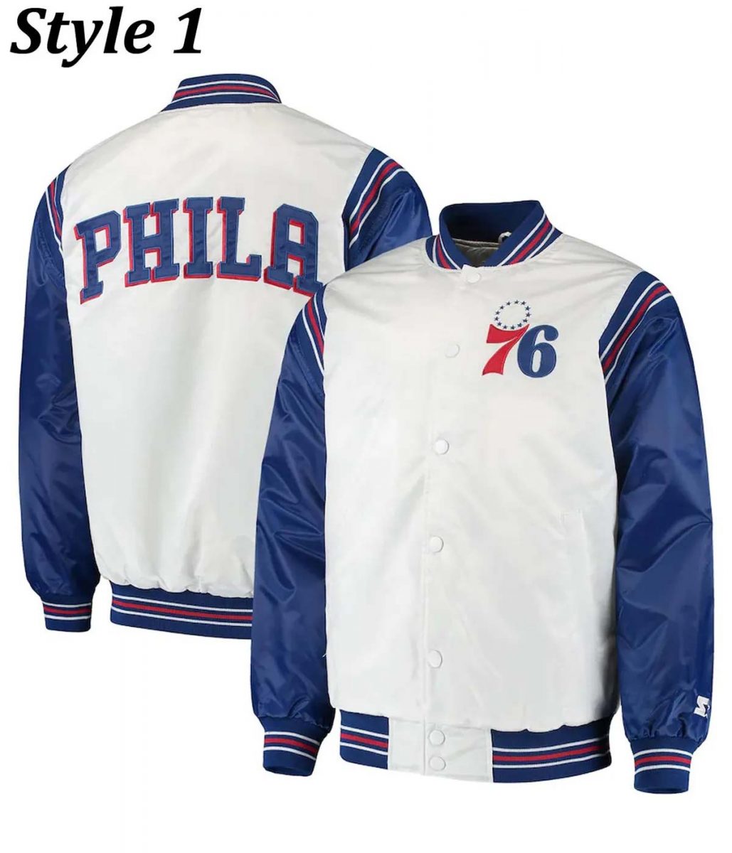 The Philadelphia 76ers varsity satin jacket is made from high-quality satin fabric. The jacket is available in a glorious white and blue color in two different styles, which gives it an innovative and attractive look. The collar of the jacket is a rib-knitted style. It has a classic snap tab buttoned front closure. A soft viscose inner lining of the jacket keeps you warm and relaxed. The sleeves of the Starter Philadelphia 76ers Renegade Varsity Satin Full-Snap jacket are long ends with rib-knitted cuffs. It has a team name written on the back and chest that gives the player a representable look. The jacket has two side waist pockets for keeping stuff. The fine quality stitching of the Philadelphia 76ers varsity satin jacket makes it durable and desirable to wear. The jacket is an ideal choice of sport lovers.