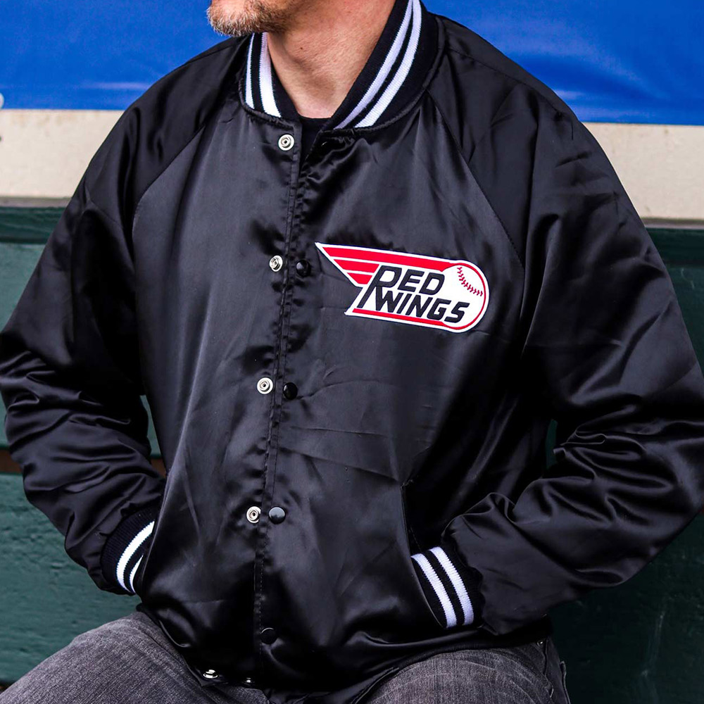 Rochester Red Wings Dugout Black Full-Snap Satin Bomber Jacket