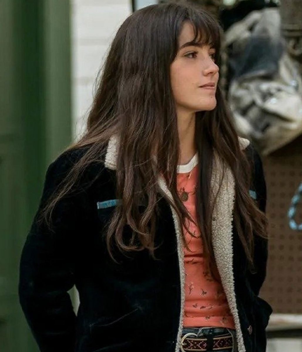 The Night Sky Toni jacket is made from high-quality denim fabric. The jacket is available in a mesmerizing black color combination, which gives it an innovative and striking look. The collar of the jacket is shirt style. It has a buttoned front closure. A soft shearling lining of the jacket keeps you warm and relaxed. The sleeves of the Night Sky Rocío Hernández Shearling jacket are long ends with buttoned cuffs. The jacket has two outside pockets, two chest and one inside pockets for keeping stuff. The fine quality stitching of the Night Sky Toni jacket makes it durable and comfortable to wear. The jacket is an ideal choice for parties.