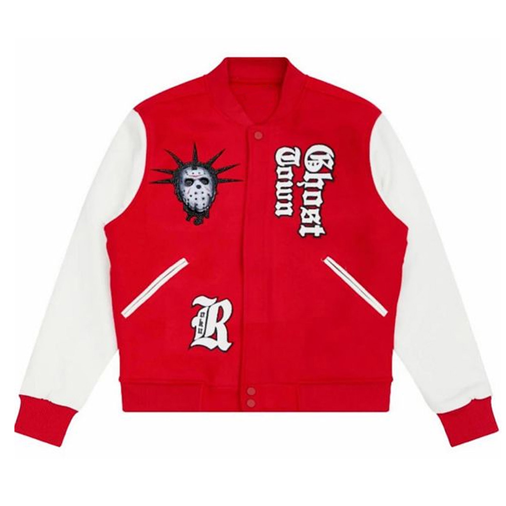 The Roku Studio Varsity Jacket captures the bold spirit of city life with its Ghost Town design. Inspired by classic varsity jackets, this piece combines modern streetwear aesthetics with timeless appeal. Its urban look makes it a standout among sports jackets, letterman jackets, and trendy bomber jackets.