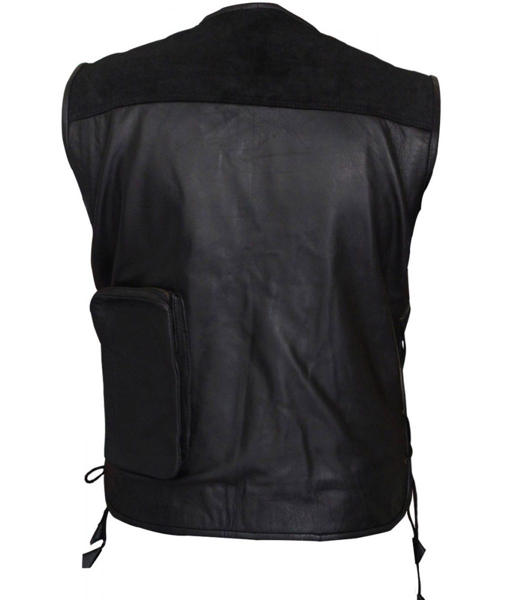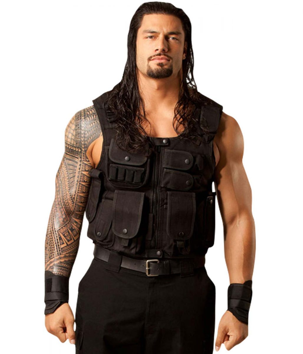 The Roman Reigns vest is made from faux leather or genuine leather. The jacket is available in a mesmerizing black color which gives it an innovative and striking look. A soft viscose inner lining of the vest keeps you warm and relaxed. The collarless design of the Roman Reigns Tactical vest makes it stand out. The jacket has a lace design on the west which gives it an edgy and dazzling look. The jacket has two flap pockets, bomber pockets, and two inner pockets for keeping stuff. The fine quality stitching of the Roman Reigns leather vest makes it durable and desirable to wear. The vest is an ideal choice for fashion and leather fanatics.