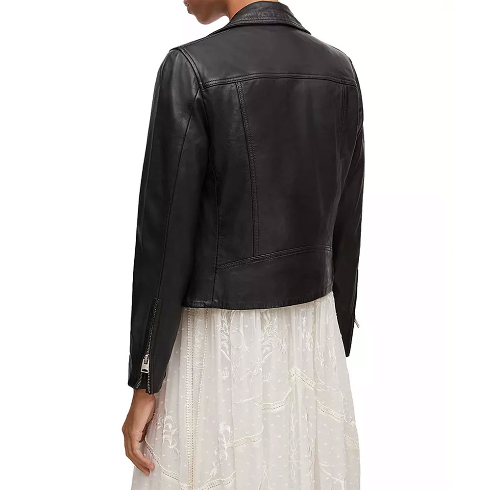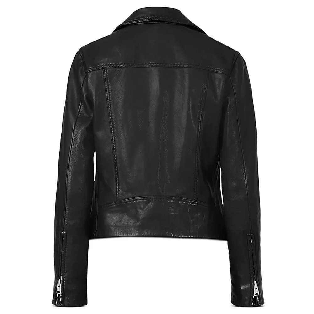 The Sheryll Barnes Leather jacket is made up of high-quality genuine leather. The jacket is available in a mesmerizing black color, which gives it an innovative and striking look. The jacket has shirt style collar. The jacket has buttoned front closure. A soft inner viscose lining of the jacket keeps you warm and relaxed. The sleeves of Sheryll Barnes Leather jacket are long with buttoned cuffs. The jacket has two inner and two side pockets. The fine quality stitching of Sheryll Barnes Leather jacket is comfortable and desirable to wear. The jacket is an ideal choice to wear in parties.