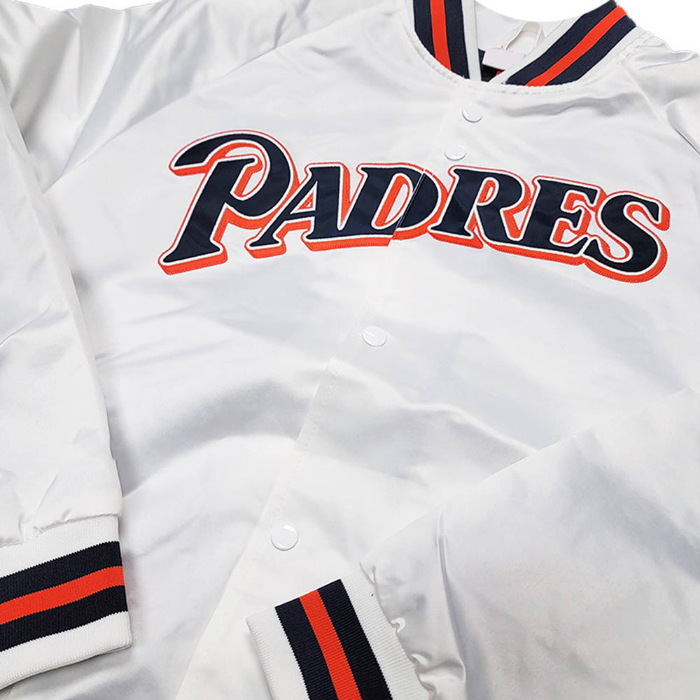 Whether you’re navigating the bustling streets of the city or making a grand entrance at a social soirée, this jacket is your ultimate companion. With two pockets providing ample storage for your essentials and fine stitching ensuring durability, it seamlessly marries form and function. Indulge in the epitome of sartorial excellence with our San Diego Padres White Lightweight Satin Jacket, where luxury meets utility and style knows no bounds.
