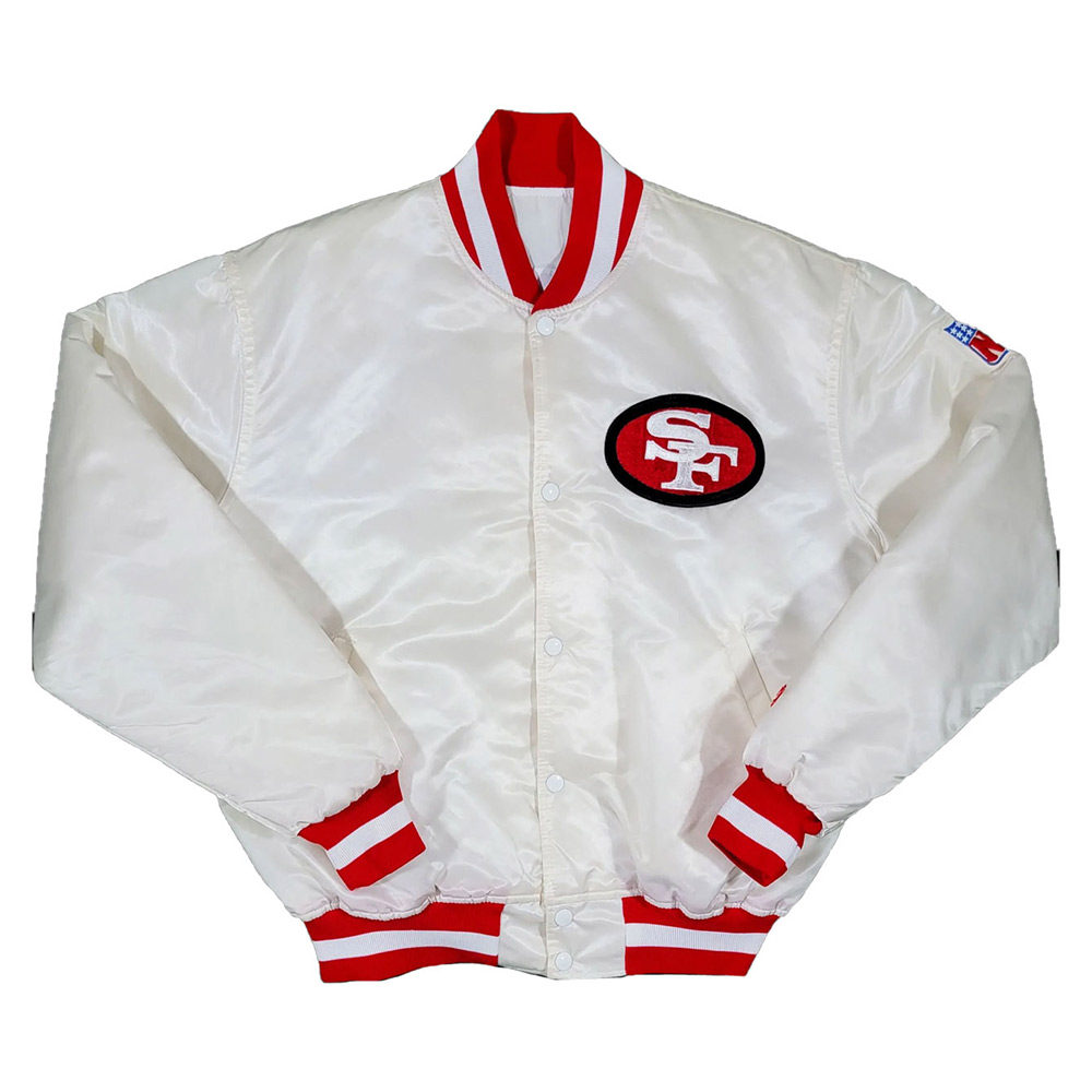 The San Francisco 49ers 80s White jacket is made up of high-quality satin. The jacket is available in a glorious white and red color, which gives it an innovative and striking look. The jacket has shirt style collar. The jacket has branded YKK zipper front closure. A soft inner viscose lining of the jacket keeps you warm and relaxed. The sleeves of San Francisco 49ers 80s White Satin jacket are long with rib knitted cuffs. The jacket has two inner and two side pockets. The fine quality stitching of San Francisco 49ers 80s White jacket is comfortable and desirable to wear. The jacket is an ideal choice to wear in parties.