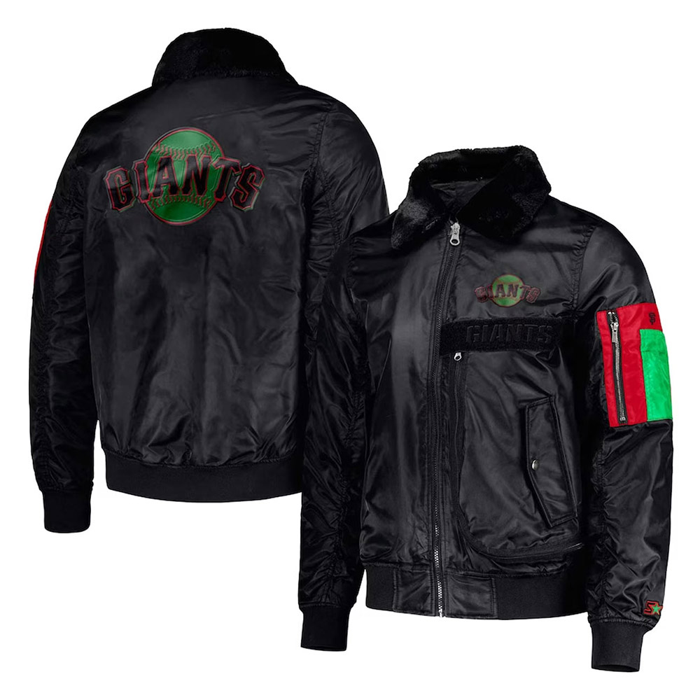 Unveil a dynamic blend of athleticism and panache with San Francisco Giants Ty Mopkins black history month jacket. Meticulously tailored from opulent satin, it showcases a captivating black hue that exudes an aura of distinction. The lapel-style collar and the branded YKK front zipper closure tango together, creating a seamless marriage of style and assurance. Its innovative design stands as a bold proclamation, making it an ideal choice for exhilarating nights with friends. The elongated sleeves of the San Francisco Giants Ty Mopkins black jacket are embraced by rib-knitted cuffs, effortlessly marry comfort with audacity. Enveloped in the velvety embrace of a viscose inner lining, warmth and tranquility become your constant companions. Meanwhile, functional waist zipper pockets and concealed inner compartments offer a stylish refuge for your essentials.