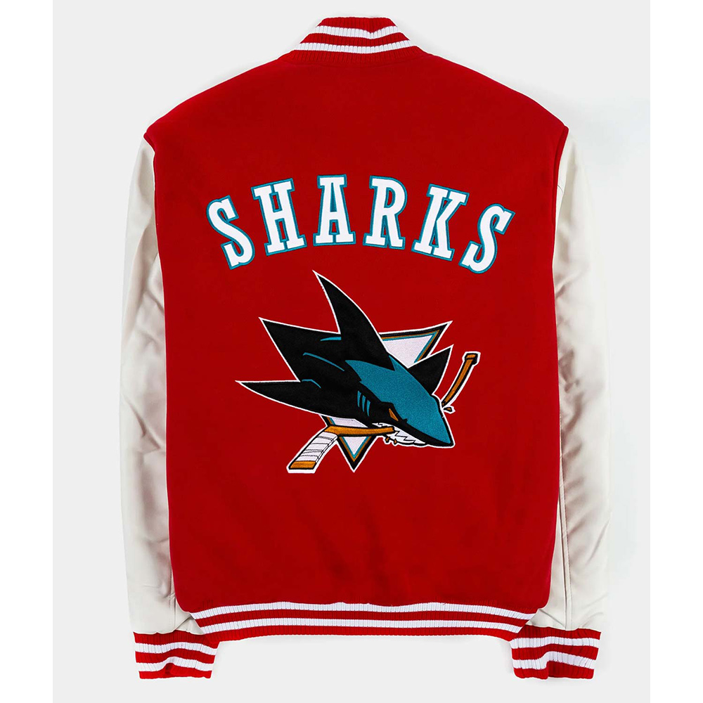 The San Jose Sharks Varsity Red and White Jacket is a men’s & women’s jacket that comes in a daring design that would show you are a die-hard supporter of the team. A great choice of warm and sturdy material is the jacket’s body from wool. The genuine leather sleeves enhance the class and comfort of the garment. Combining between red and white, which are bright colors, provides it sexy and innovative looks. The interior is lined with viscose so it is comfortable to wear throughout the day from games to hanging out with friends. The collar, cuffs, and hemline of San Jose Sharks Red and White Varsity Jacket are rib-knitted to ensure a close fitting and the varsity jacket design is retained.