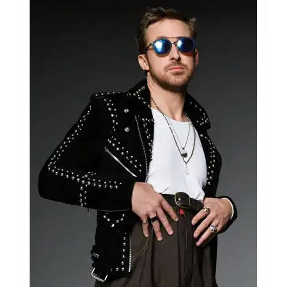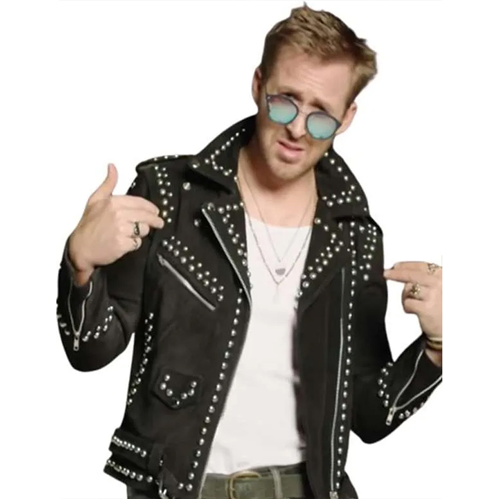 Ryan Gosling Saturday Night Live Black Studded Suede Leather Jacket