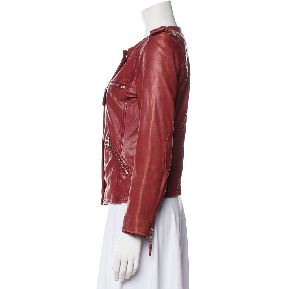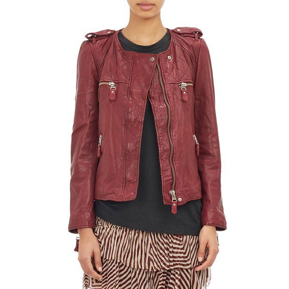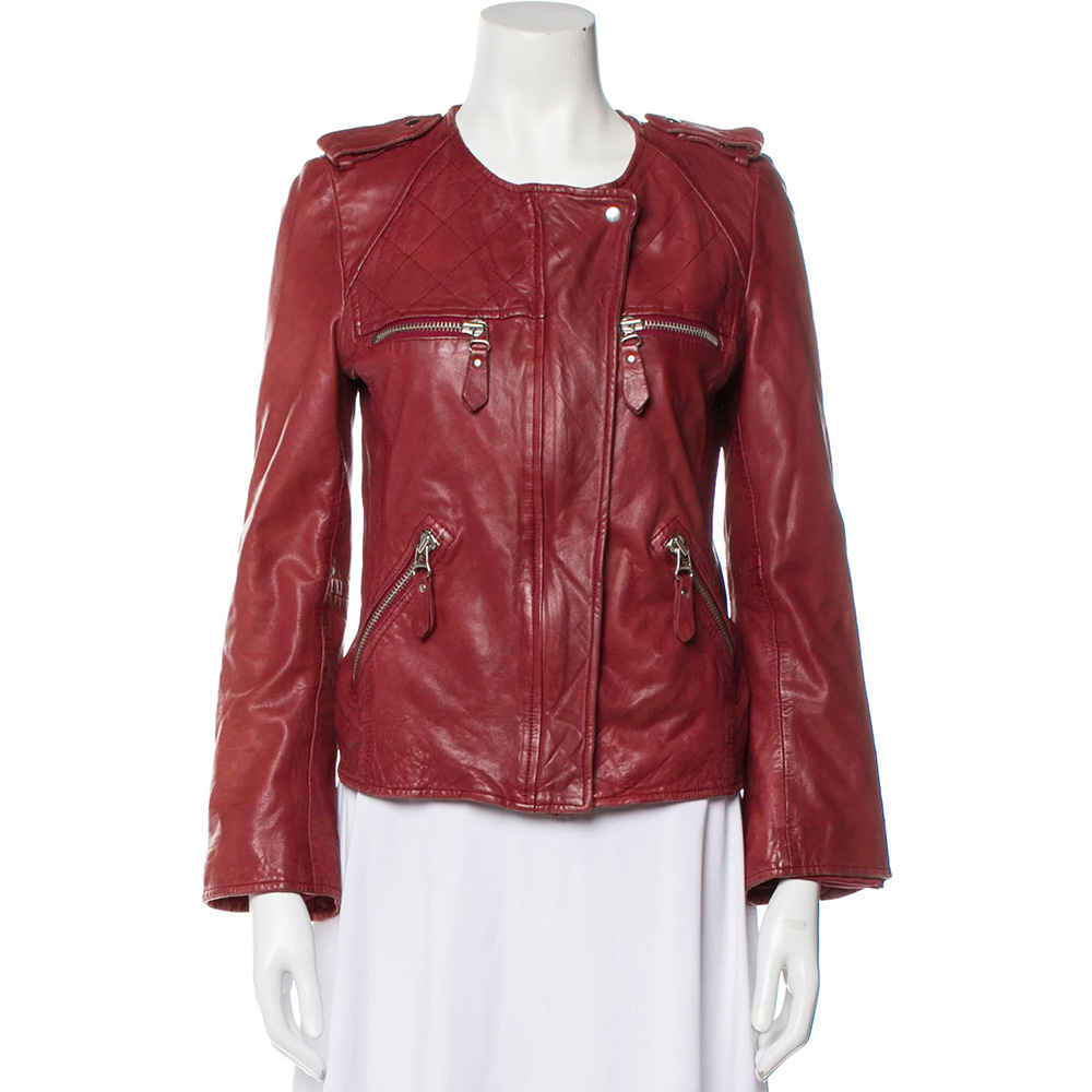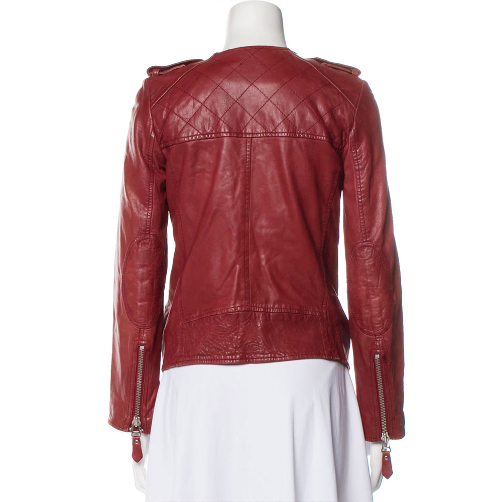 Elevate your fashion game with the Quinn Perkins Red Leather Jacket, a masterpiece inspired by the iconic appearance of Quinn Perkins, portrayed by Katie Lowes, in Scandal Season 5. Crafted from premium genuine leather, this jacket encapsulates a blend of style, comfort, and character. The vibrant red color of the jacket is sure to turn heads and make a bold statement. The belted shoulder detail adds a touch of uniqueness and elegance to the overall design. The round neck collar complements the jacket’s modern and versatile look. The buttoned-over-zipper front closure contributes to the jacket’s contemporary style and offers an edgy twist. The zipper cuffs and belted shoulder enhance the jacket’s character, creating a sophisticated silhouette that embodies confidence. The soft viscose lining ensures a comfortable and cozy fit, allowing you to wear the jacket with ease. The logo on both sides of the chest adds an exclusive touch, while the fine quality stitching reflects the attention to detail that defines this jacket. Designed with practicality in mind, the jacket features two side pockets that offer both style and functionality. Whether you’re looking to make a statement at a special event or elevate your everyday ensemble, the Quinn Perkins Red Leather Jacket is the perfect choice.