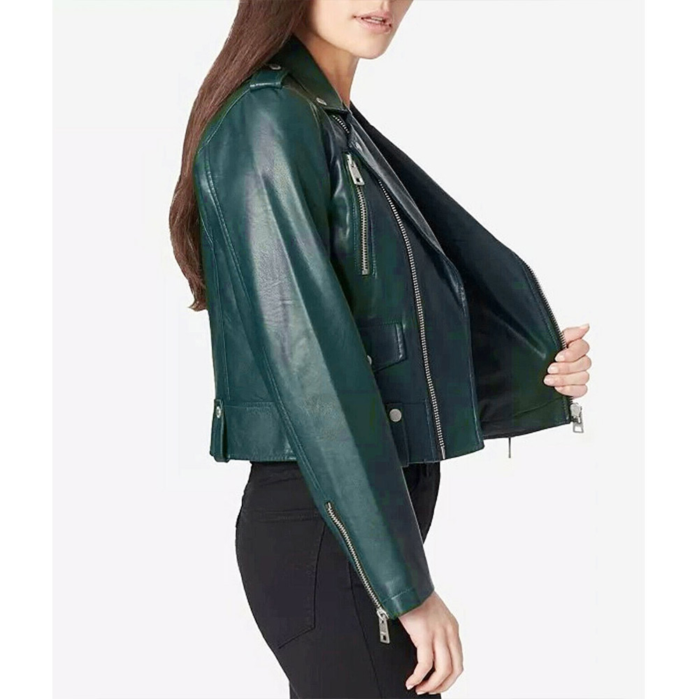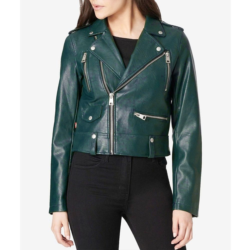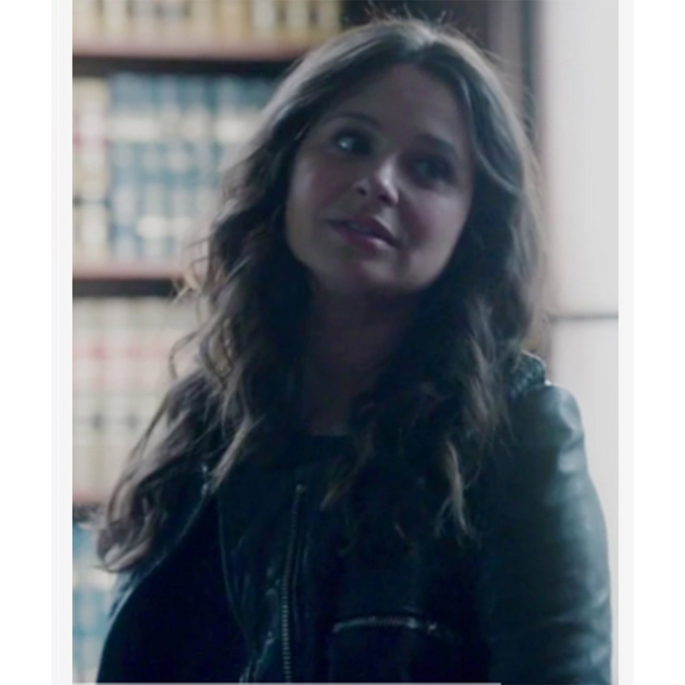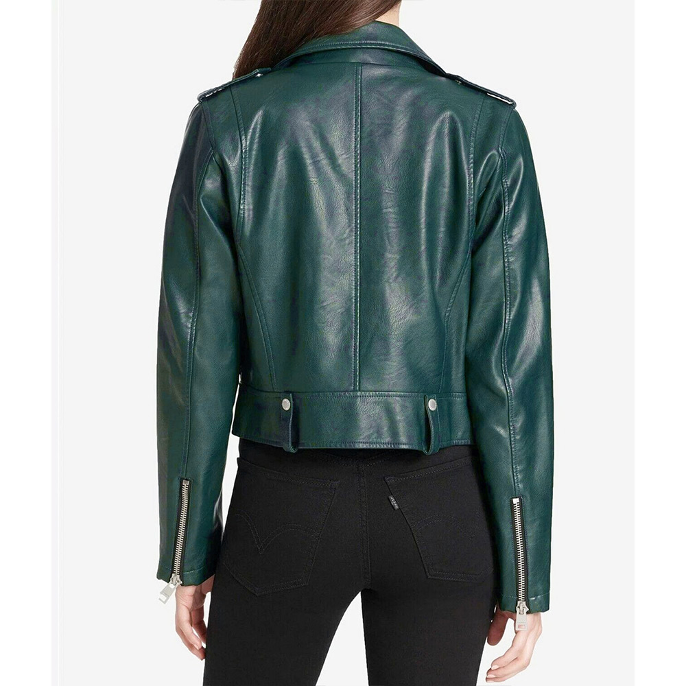 Katie Lowes Scandal S04 Quinn Perkins Green Leather Biker Jacket