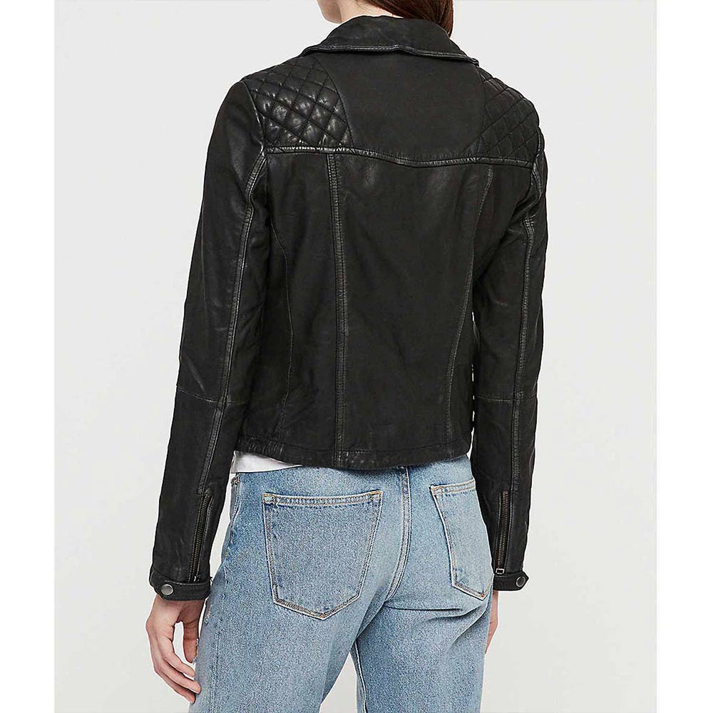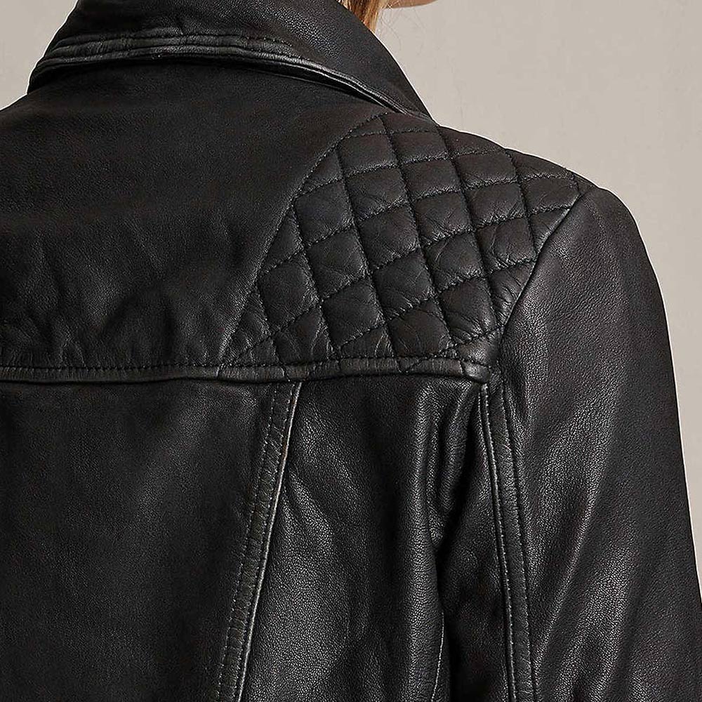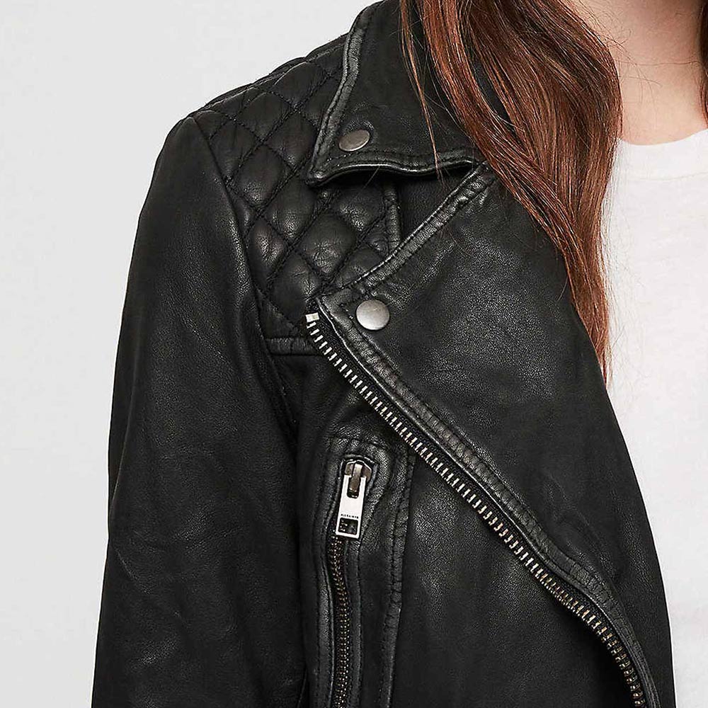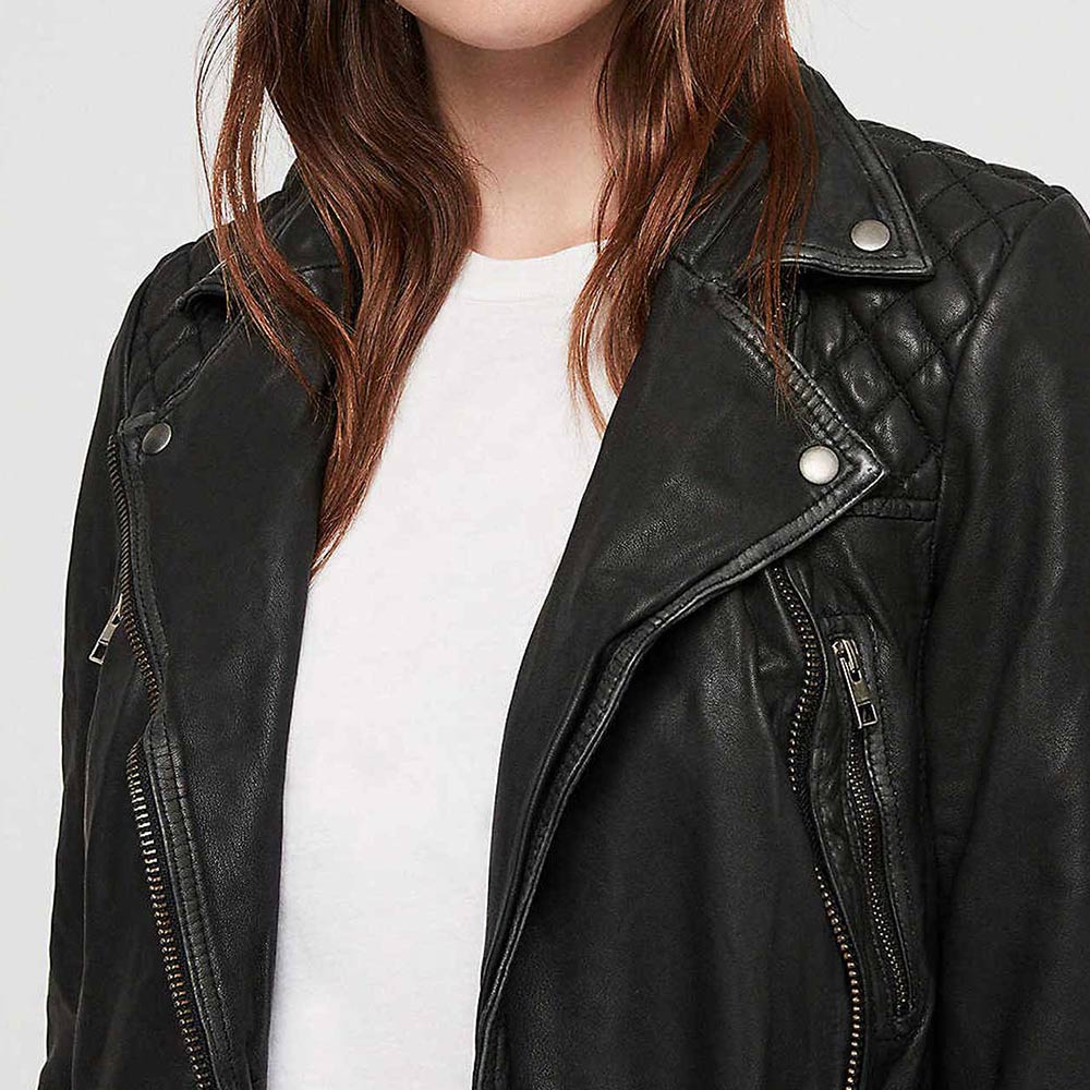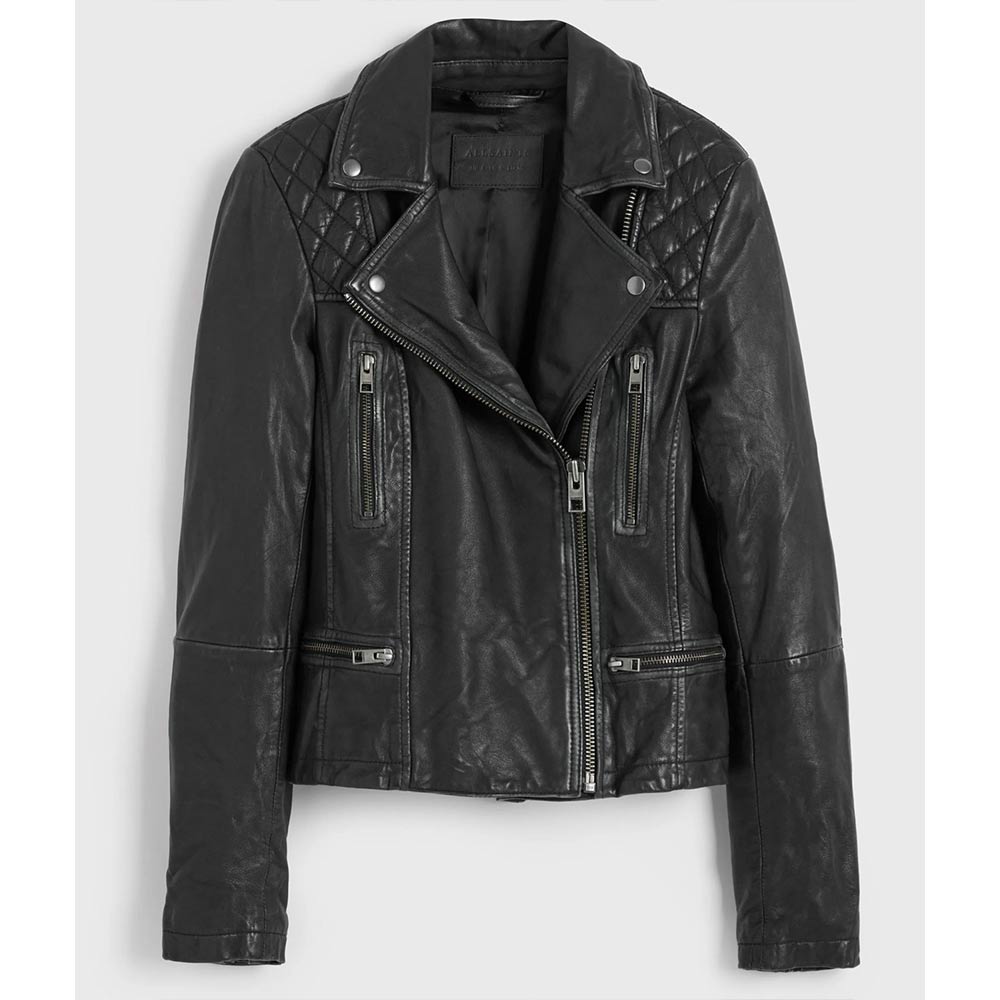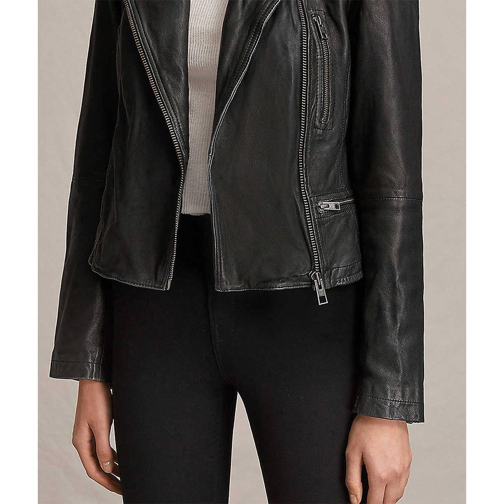 Immerse yourself in the allure of ‘Scandal’ Season 4 with the Quinn Perkins Leather Jacket, an emblem of strength and style influenced by Katie Lowes’ character. Crafted from genuine leather in a commanding black hue, this jacket features an asymmetrical zipper closure and a lapel collar for an edgy yet refined appearance. The long sleeves with zipper cuffs and precise stitching elevate its overall charm. With a viscose lining for comfort, this Scandal Season 4 Katie Lowes Leather Jacket is a versatile garment for any occasion. Its two front zipper pockets, both inside and out, make it not just a fashion statement, but a declaration of empowerment.
